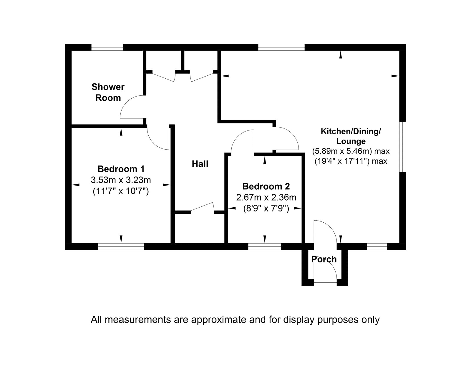 The living accommodation comprises; Entrance porch, a spacious and modern open plan lounge/dining/kitchen area, inner hallway, two double bedrooms and a bathroom.