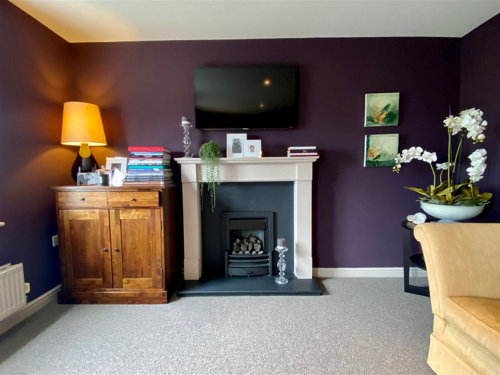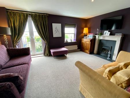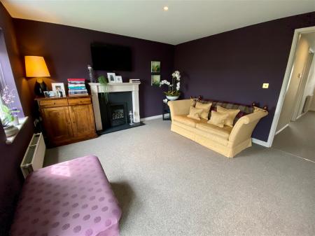 Tastefully decorated and enjoying open views to the rear with double glazed uPVC window and double glazed patio doors with Juliette balcony, double radiator, modern fireplace with living flame coal effect gas fire, matt black inset and matching hearth with decorative wooden surround and mantlepiece, ceiling spotlights, television aerial.