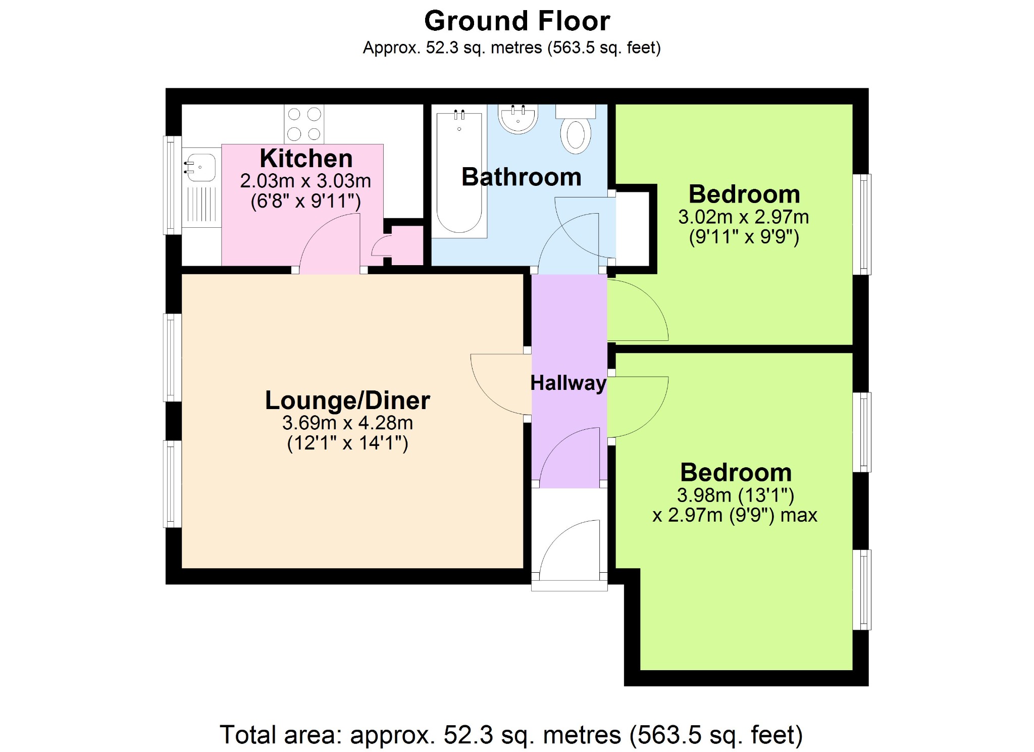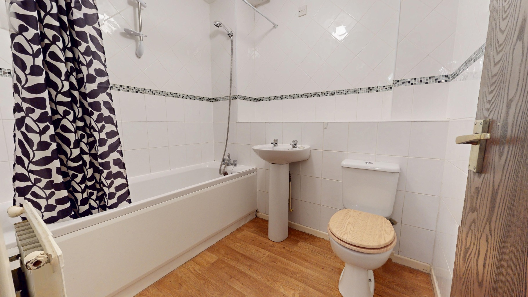 The apartment boasts two well-proportioned bedrooms. The master bedroom offers a comfortable retreat, providing ample space for a double bed and additional furnishings. The second bedroom is equally versatile, ideal as a guest room, a home office, or a child's bedroom, adapting to your specific requirements. Both bedrooms are designed to maximise natural light, creating peaceful and restful environments. The bathroom is fitted with a contemporary suite, including a shower over the bath, offering both convenience and a refreshing experience. The clean and modern finishes ensure a pleasant and functional space for your daily routines.