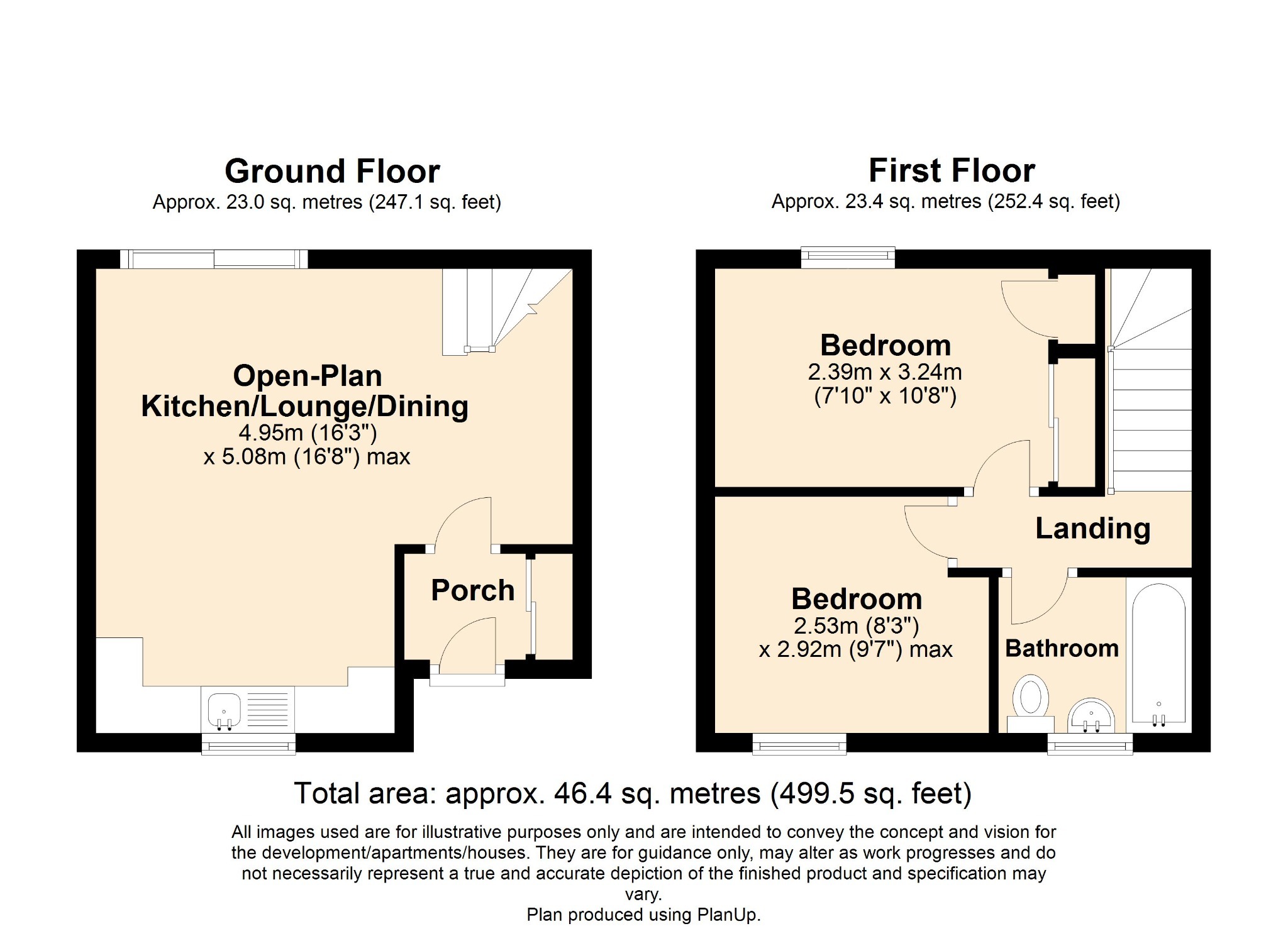 Ascending to the first floor, you will find two comfortable bedrooms. These rooms are well-proportioned, providing ample space for furniture and personal touches. The family bathroom serves both bedrooms, featuring essential fixtures and fittings to cater to your needs. The layout upstairs is practical and efficient, ensuring a comfortable living arrangement for residents.