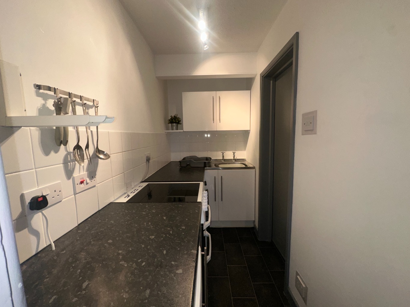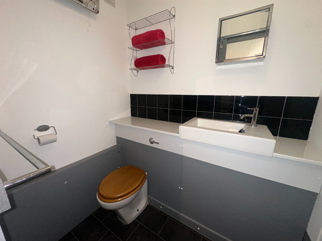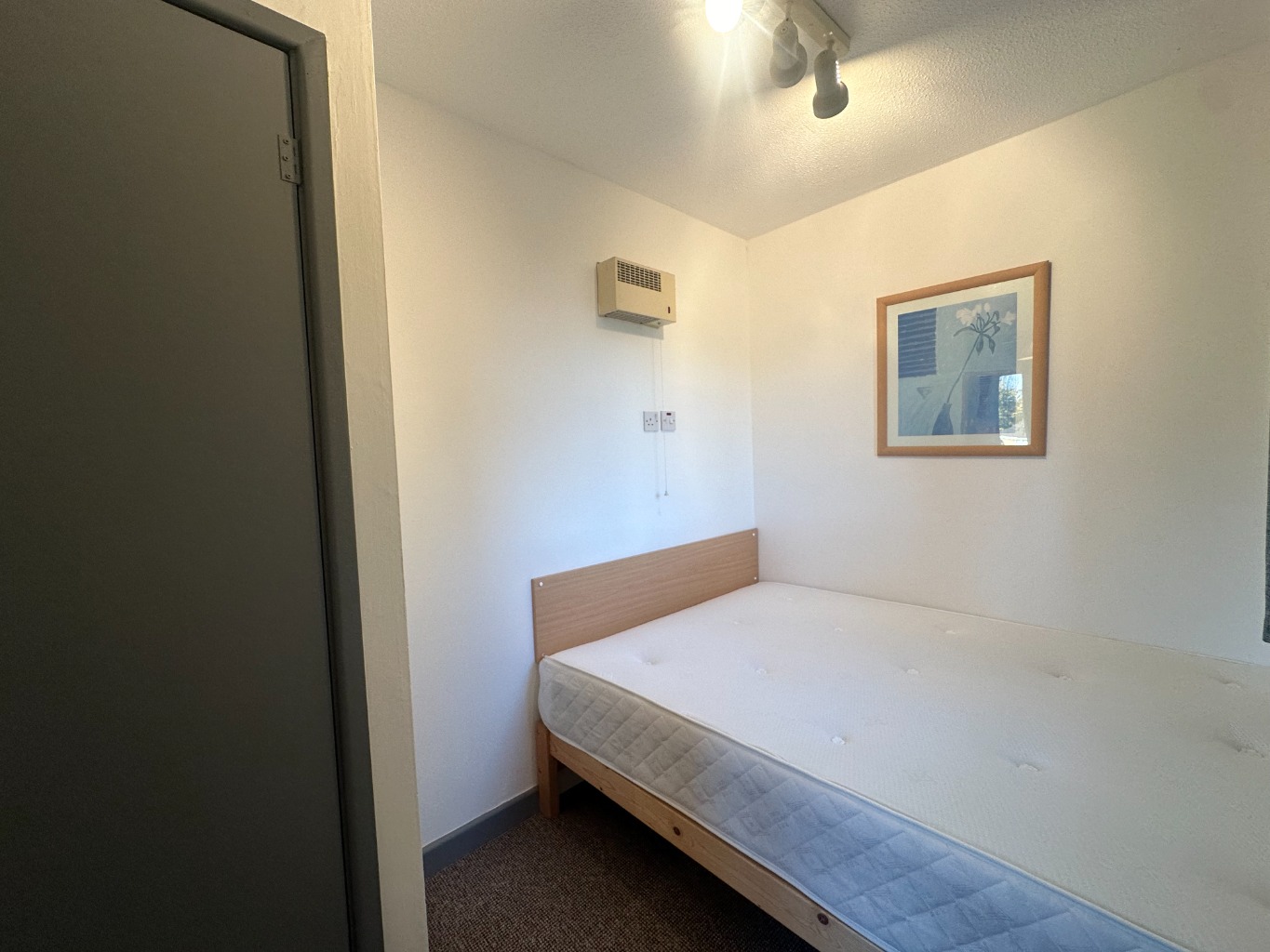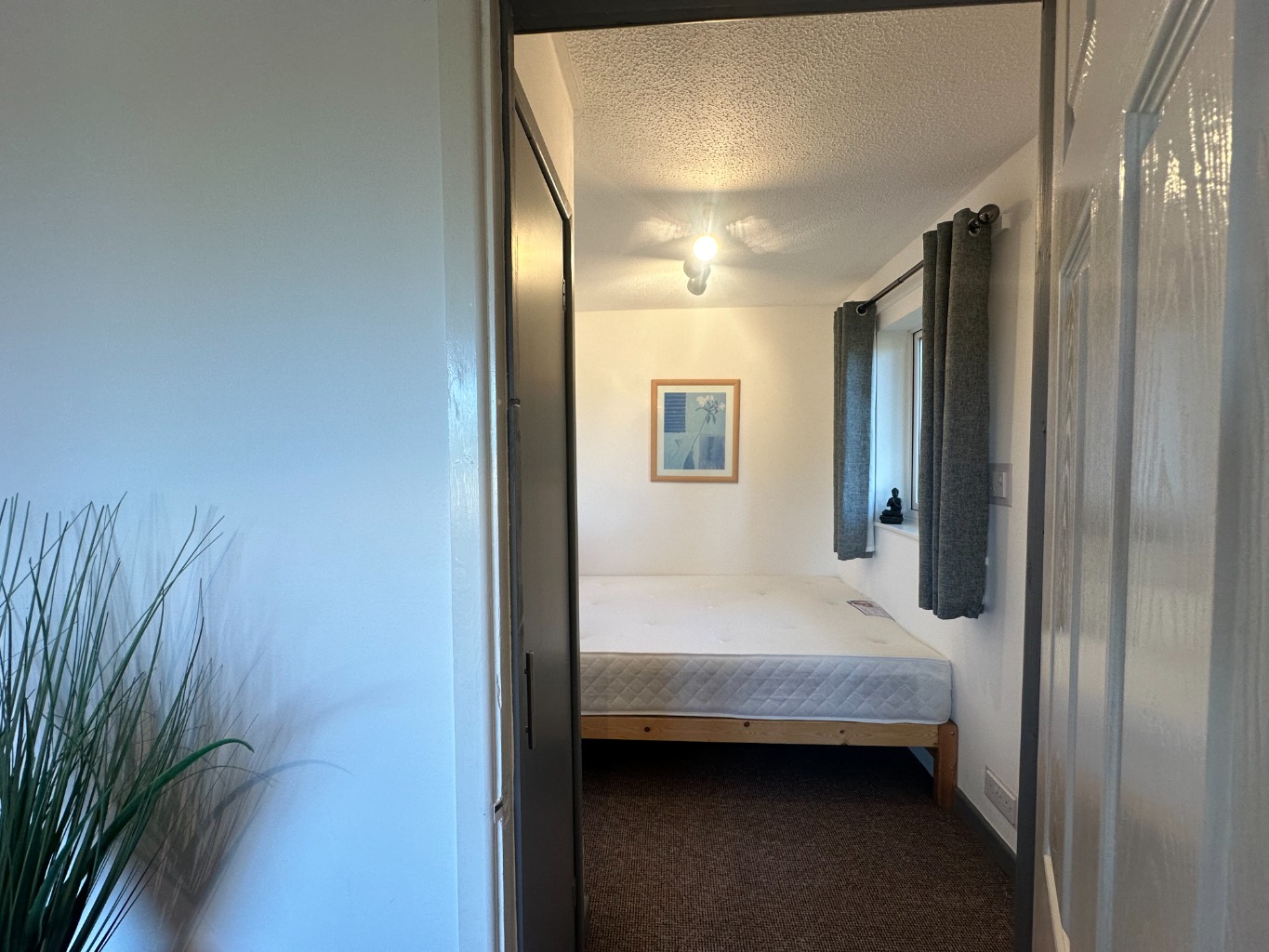 The bedroom in this flat has a cozy and comfortable bed, it offers a peaceful retreat where you can unwind and rest. The neutral decor creates a calming ambiance. There is also storage space for your belongings, keeping the room tidy and organized.