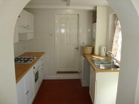 Kitchen - Double window and door to the side, 1? bowl single drainer stainless steel sink unit with mixer tap, matching base and wall units, electric oven with four ring gas hob over, dishwasher to remain, tiled flooring, door to-