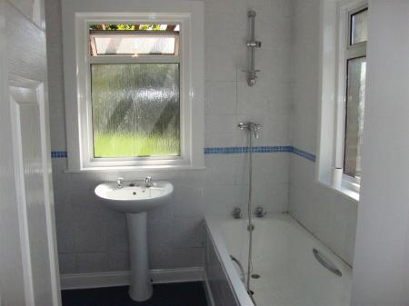 Bathroom - Double glazed windows to rear and side, white suite comprising of bath with mains fed shower unit over, pedestal wash hand basin, low level wc, heated towel rail, fully tiled.