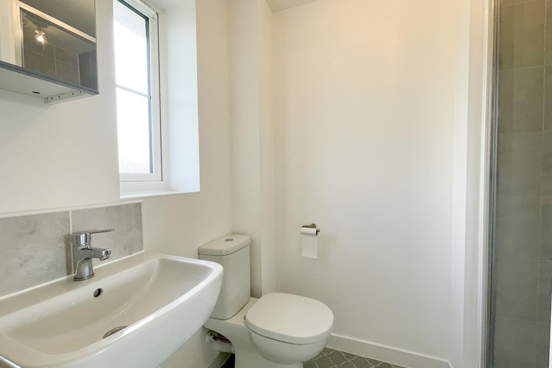 Upstairs, are two well-proportioned double bedrooms. The principal bedroom benefits from a modern white en suite shower room, while a family bathroom serves the second bedroom. The ground floor is laid with practical wood-effect flooring, whilst the first-floor bedrooms are carpeted, creating a warm and comfortable atmosphere.