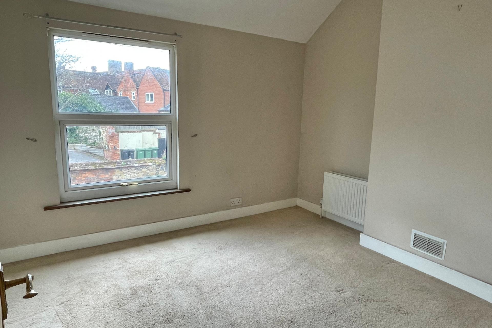 This mid terrace cottage is an inviting mixture of old and modern. The location is perfectly situated within Thame, with easy access to the town centre and surrounding areas. The solid wooden entrance door leads into an open plan living space, complete with an open brick fireplace topped with a wooden mantelpiece, along with handy understairs storage. Through to the kitchen which comprises a range of Shaker style wall and base units incorporating cupboards, drawers, wine racks, glass front display cabinet, open shelving, granite effect worktop, stainless steel sink and drainer with chrome mixer tap, tiled splashback, space and plumbing for a slimline dishwasher, electric oven with four ring gas hob and fridge freezer. Door to a very convenient utility room, which houses the washing machine and a space for a dryer. A wooden stable door allows access to the rear courtyard complete with decking. Rising to the first floor there are two good sized bedrooms, the master having built in storage. The bathroom has a white suite with a shower over the bath.