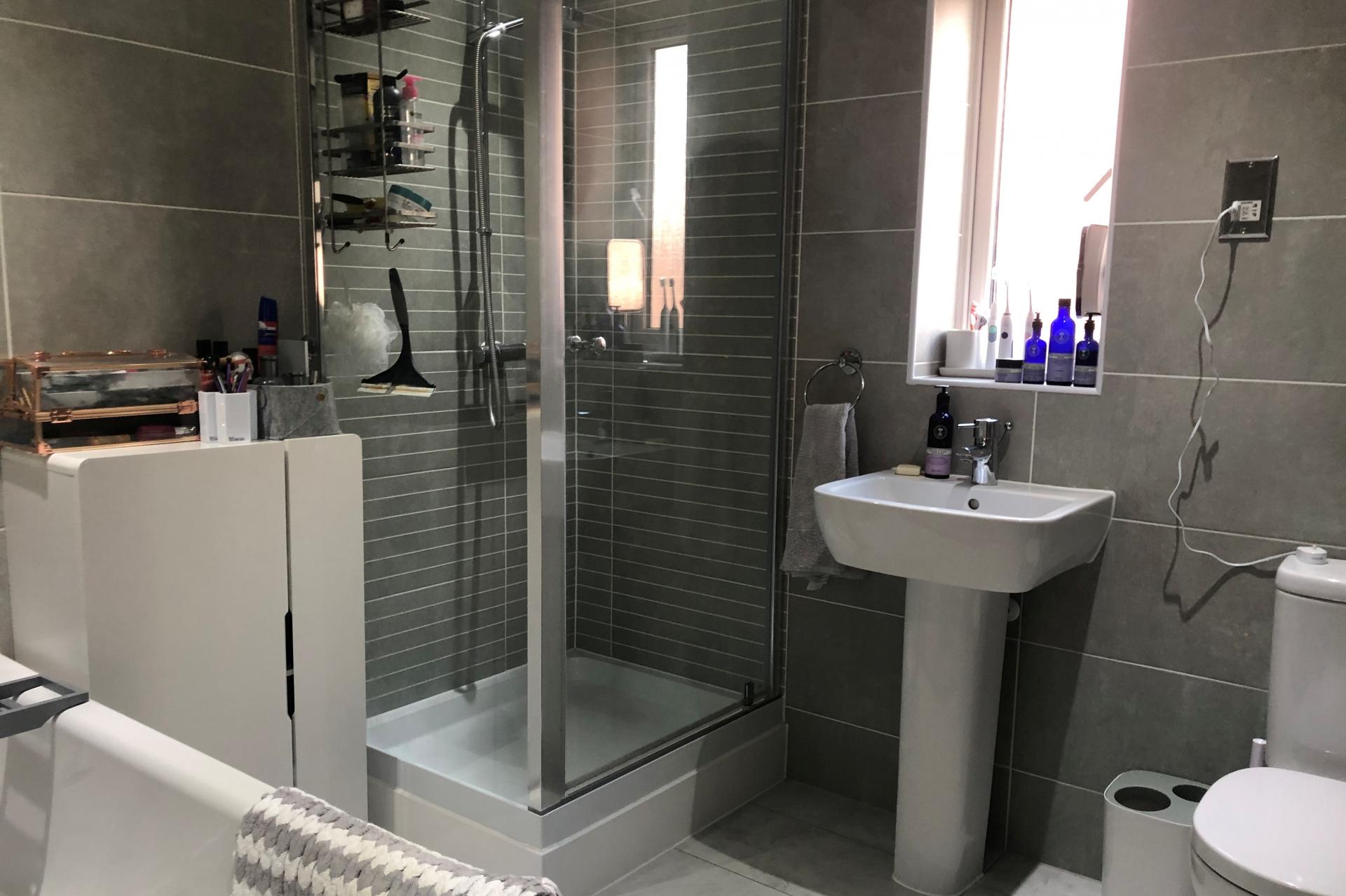 The first floor offers a generous principal bedroom with built-in wardrobes and a spacious en-suite shower room, along with three further double bedrooms, a single bedroom, and a well-appointed family bathroom featuring both a bath and a walk-in shower. All rooms are accessed from a bright and airy landing.