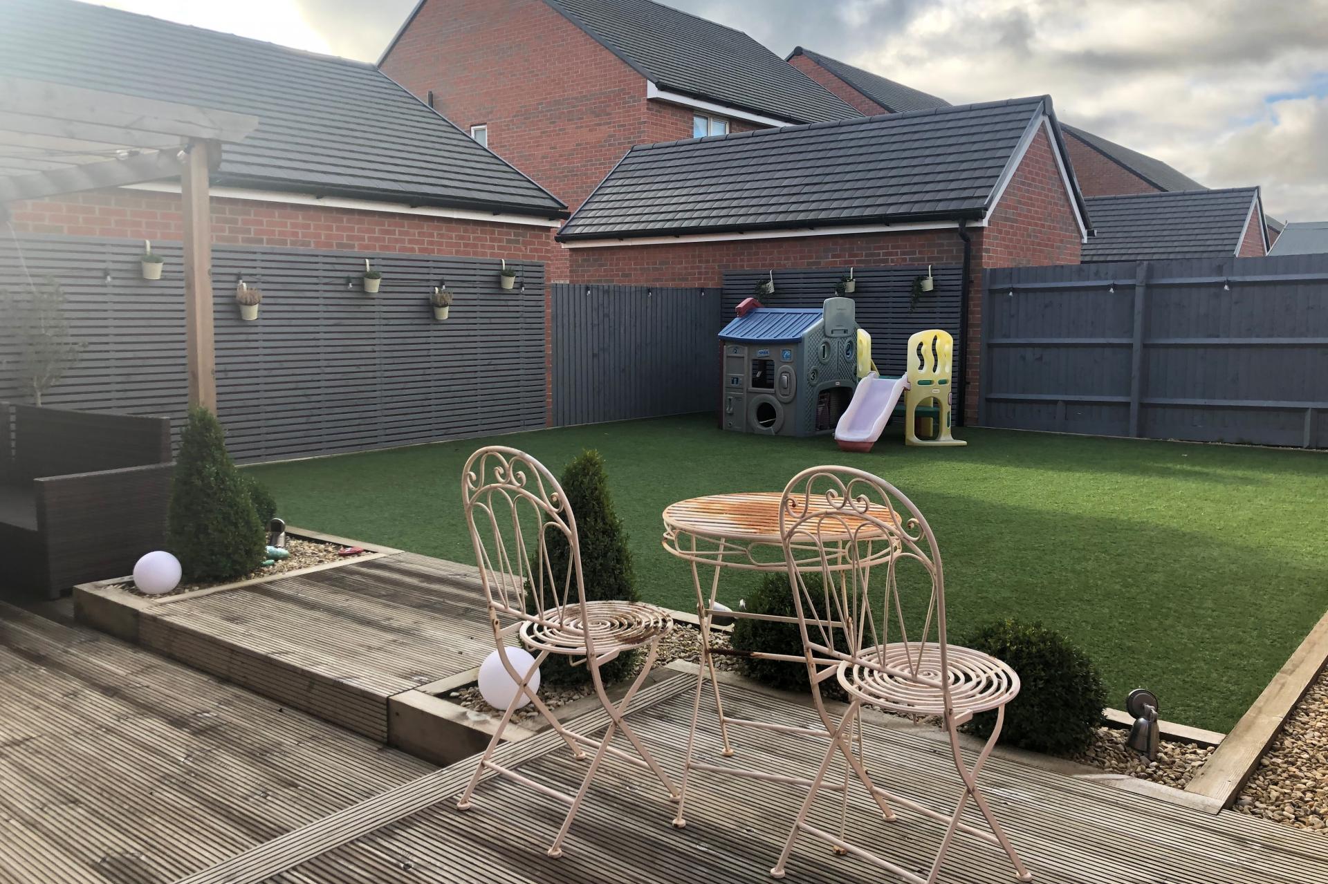 The accommodation is arranged around a spacious, light-filled entrance hall. To the front of the property, both the drawing room and dining room enjoy views over open green space. To the rear, the kitchen/breakfast/family room is fitted with a range of wall and floor units, a breakfast bar, and integrated appliances including a wine fridge and dishwasher. This sociable space is ideal for both entertaining and everyday family life, with patio doors opening onto the attractive, low-maintenance rear garden.