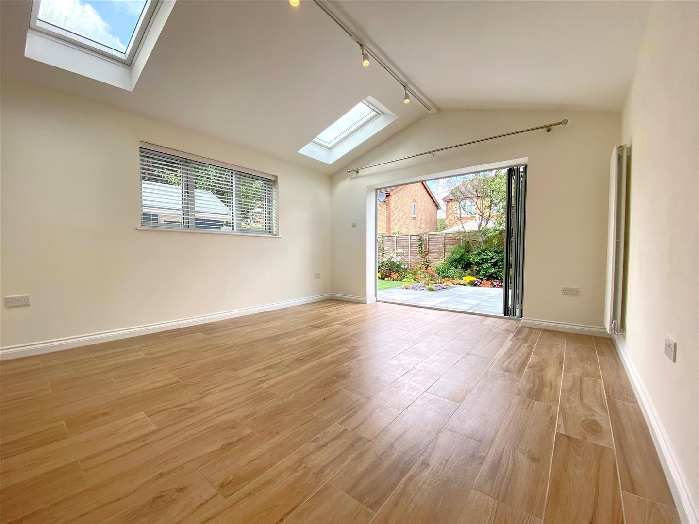 The extension benefits from two remote controlled solar panelled Velux Integra roof lights, triple glazed side window and bi folding doors opening out onto the rear garden