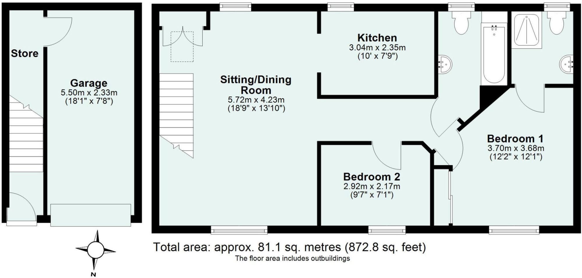 - Large two-bedroom detached coach house with communal gardens