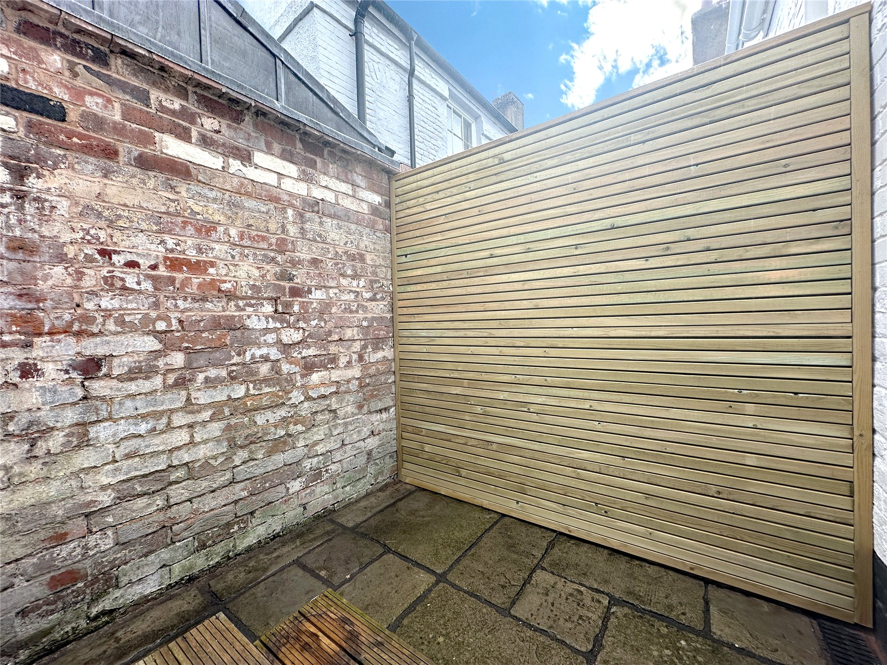 OUTSIDE From the living space, double doors leading out to enclosed courtyard garden with space for a table and chairs. Cupboard housing bin storage and meter cupboard.