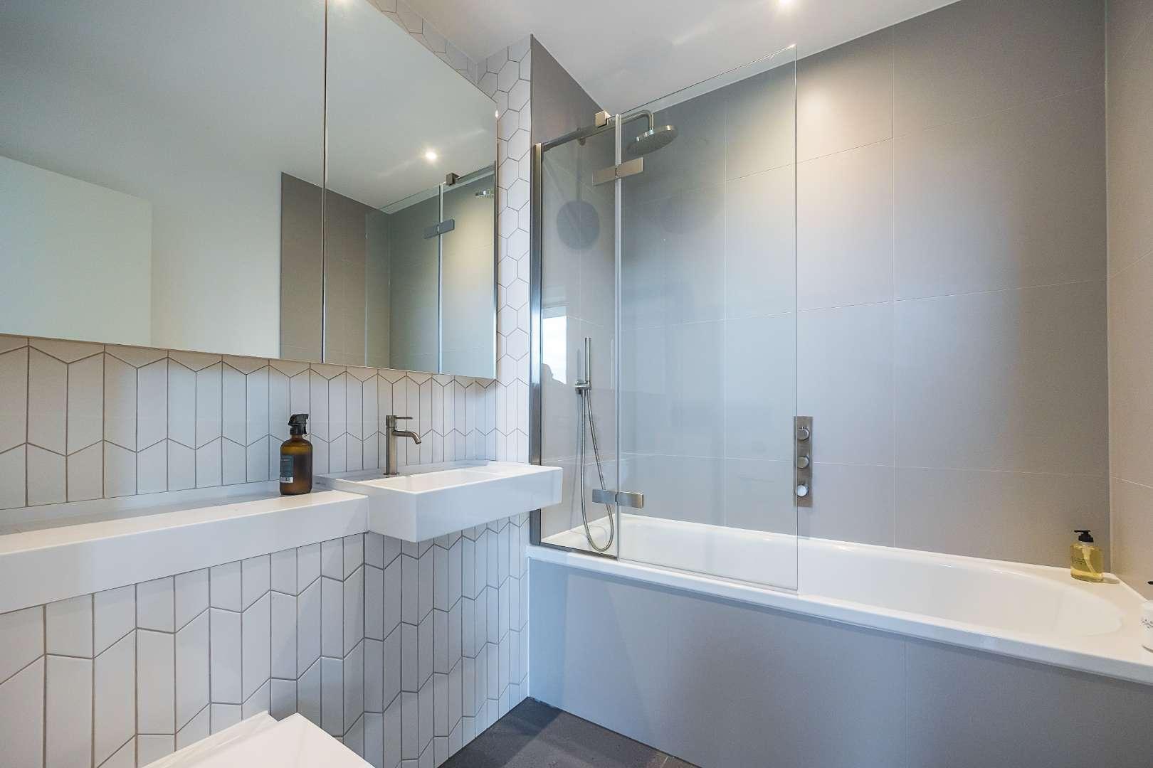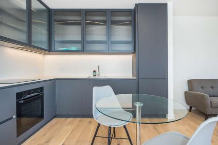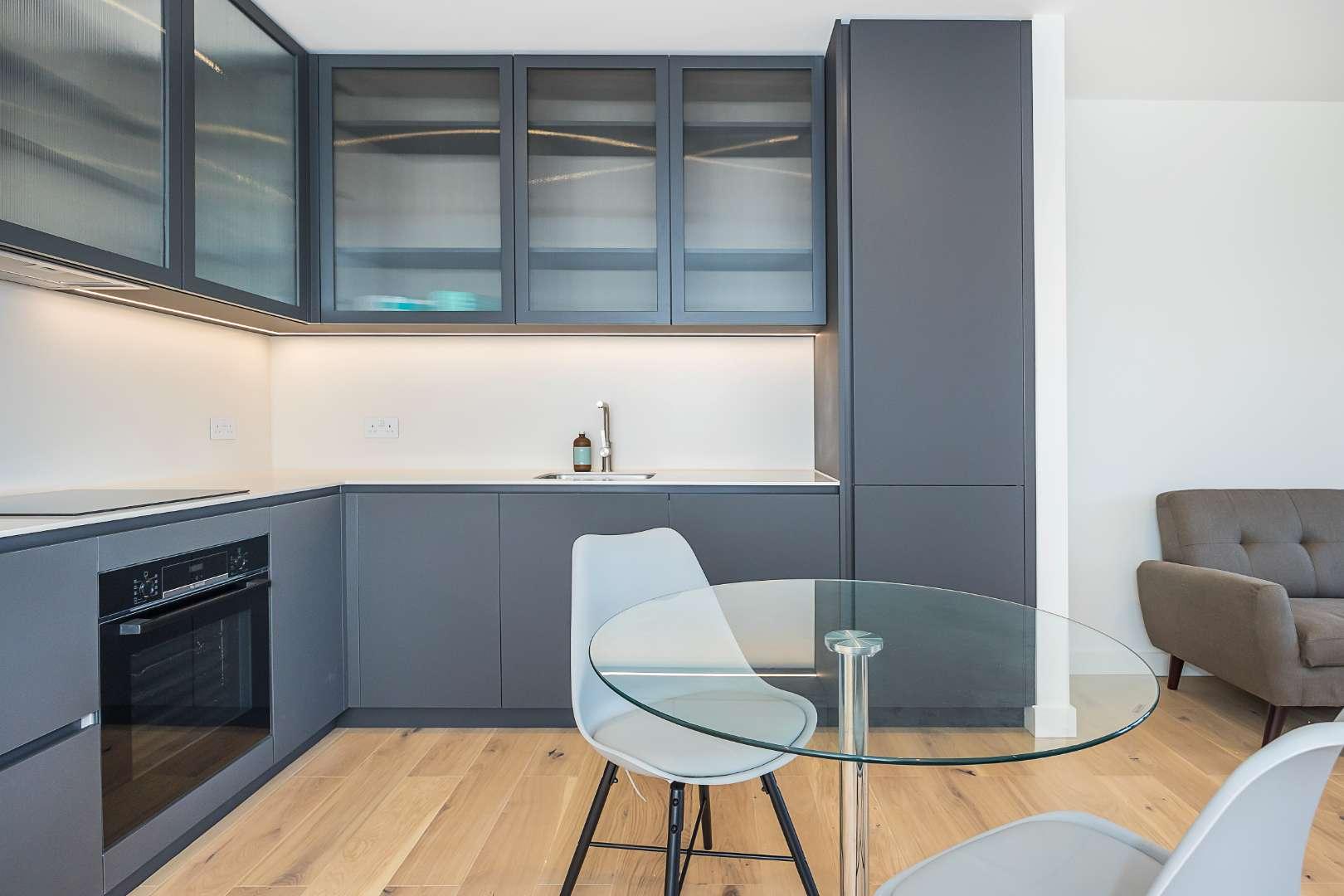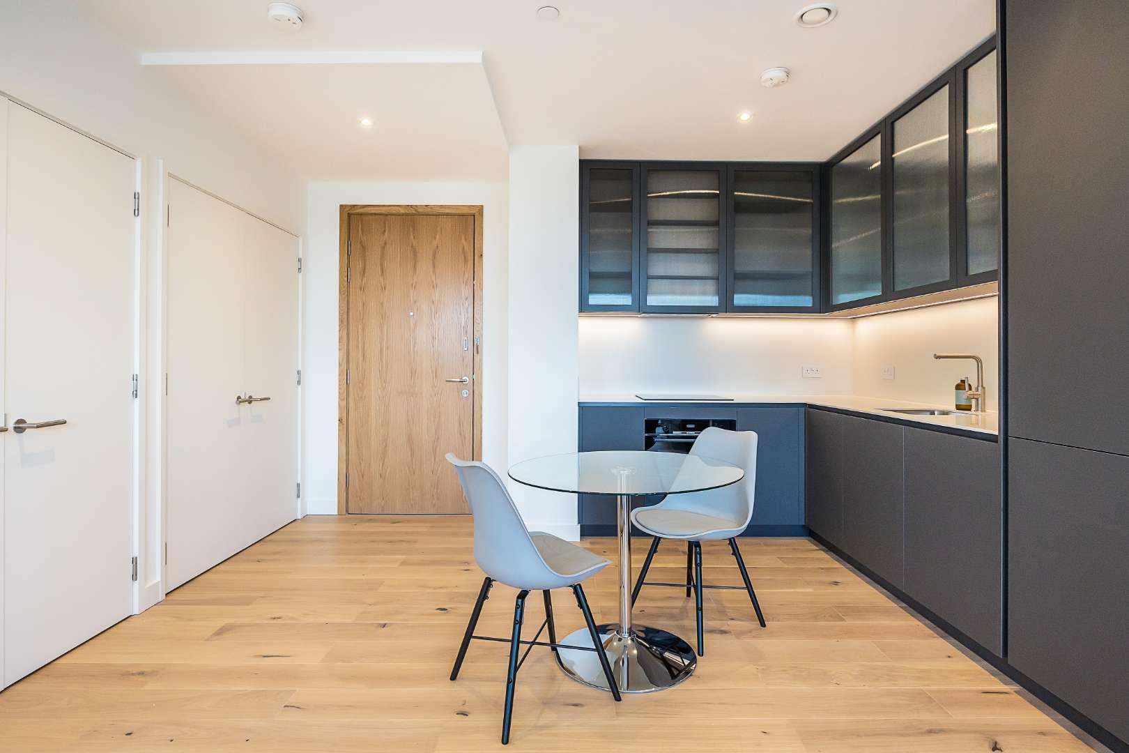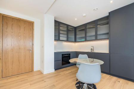 An amazing one bedroom apartment within this modern development in Tottenham Hale which completed in 2023. This is one of the favoured apartment types, with fantastic views (from the 13th floor) towards and over Walthamstow Wetlands and Lockwood Reservoir, from it's private balcony. The interior offers a high quality, stylish finish with a striking integrated kitchen with Bosch appliances and spacious reception room with engineered wood floors, bedroom with wardrobe space and a luxurious bathroom. Practicalities are taken care of with a large utility cupboard housing the washer dryer and further storage space.