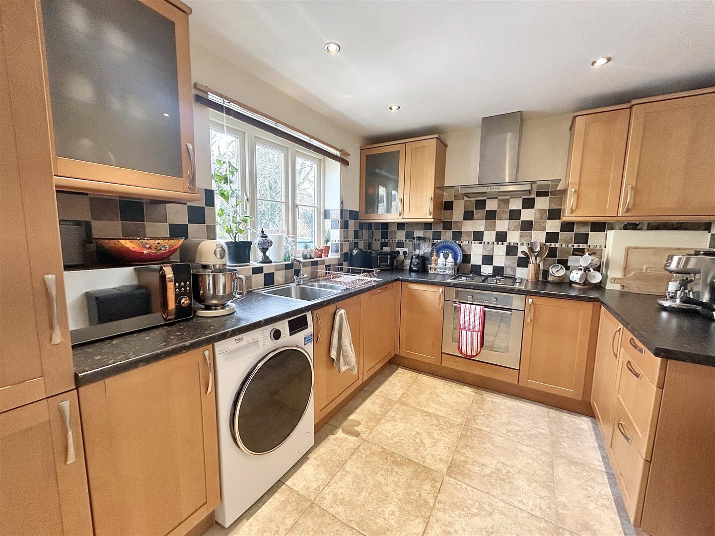 Kitchen/Breakfast Room: - 5.23m x 2.62m - Solid beech base and eye level cupboards incorporating a one and a half bowl sink unit with cupboards below. Inset four place stainless steel gas hob, electric oven below, chimney hood above, glazed display cupboards, integrated dishwasher, plumbing for washing machine, integrated fridge/freezer, ceramic tiled floor, double glazed window to side elevation.