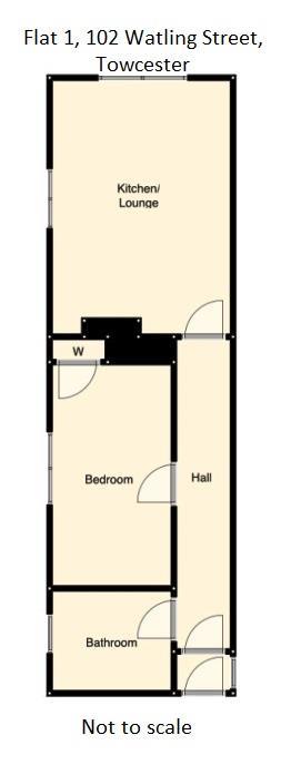 A one bedroom first floor flat located within Towcester town centre. There is a double bedroom, a lounge/kitchen with a fitted kitchen, a bathroom, gas central heating to radiators and double glazed windows.