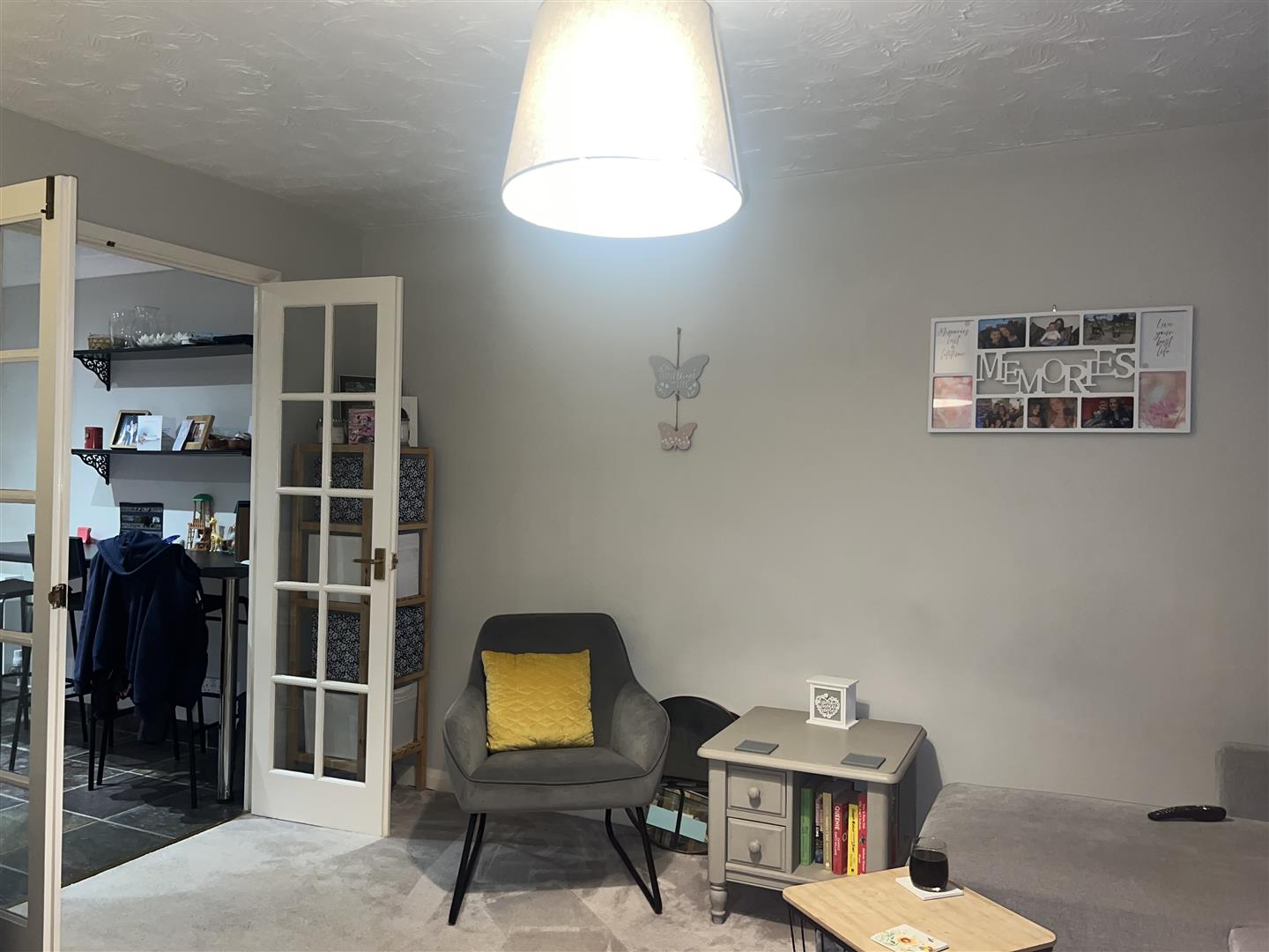 Lounge: - 4.142m x 3.466m - Of irregular shape with a UPVC window to the front. Recess under the stairs. TV point. Telephone Point. Double doors to:
