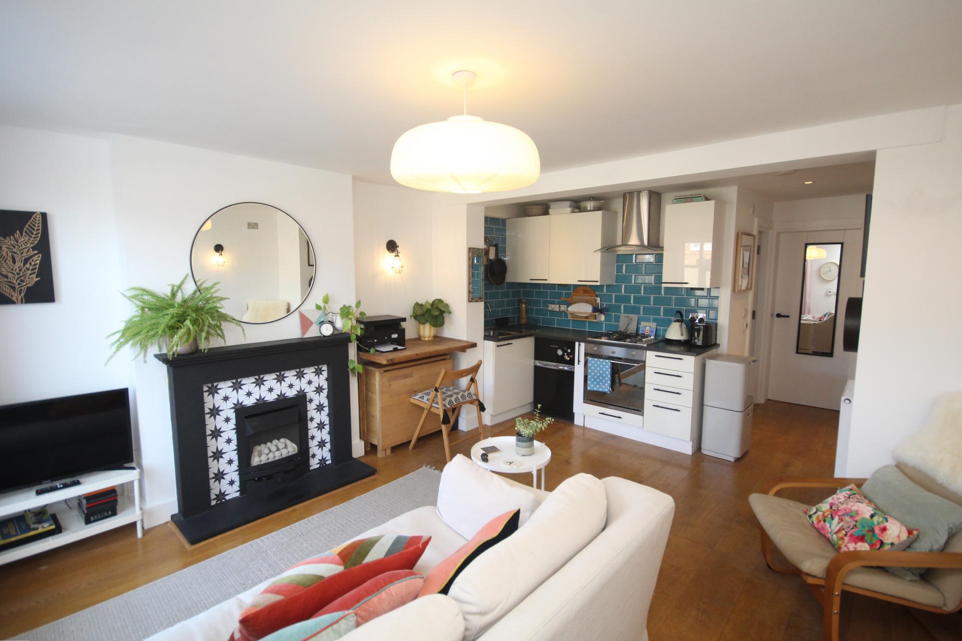 Access is via a solid wood front entrance door, leading to open plan living room.