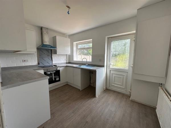 NEWLY FITTED - Range of base and wall units in a grey gloss finish with complimentary worktops. Inset single bowl single drainer sink and monotap. Built in Single oven, hob and extractor fan. Plumbed for an automatic washing machine and space for a fridge freezer. Rear facing uPVC window and door to the rear with double glazed lights.