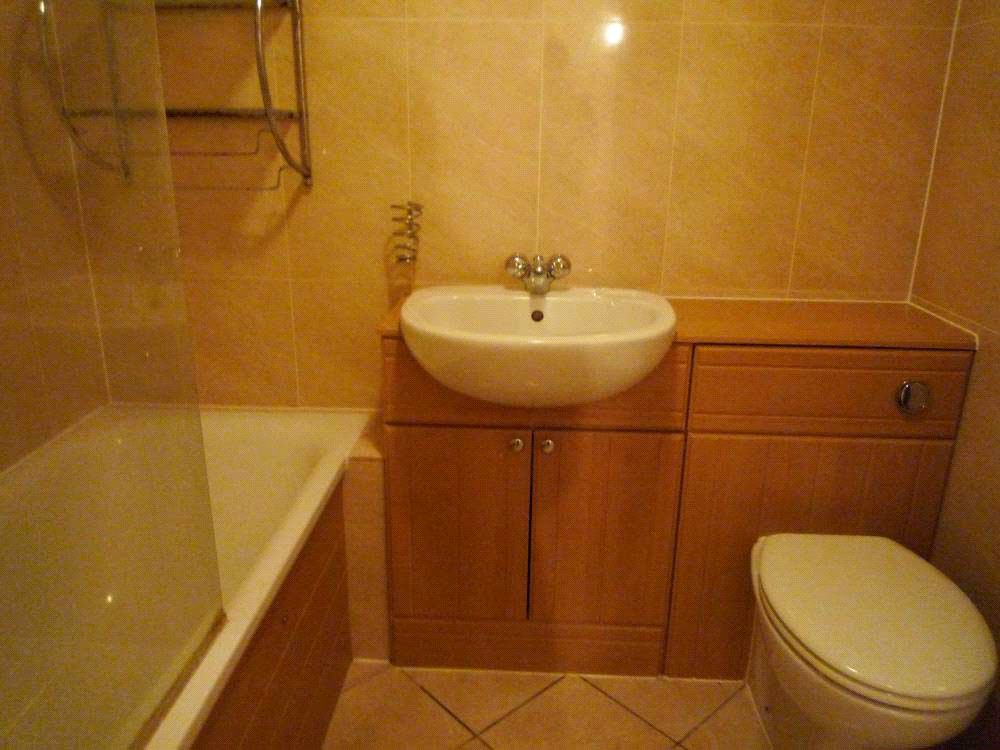 Bathroom 6'6" x 5'8" (1.98m x 1.73m). Bath with shower and screen. Wash hand basin in vanity unit. Low level W.C. Extractor fan. Tiled flooring.