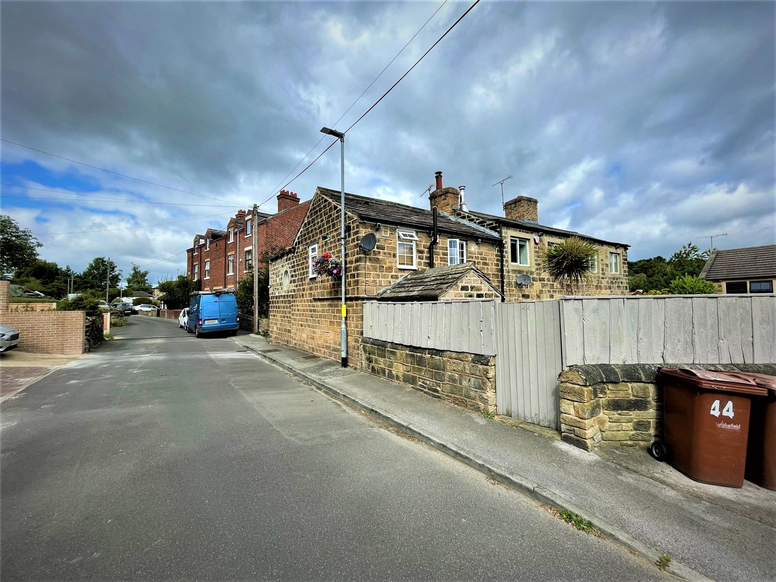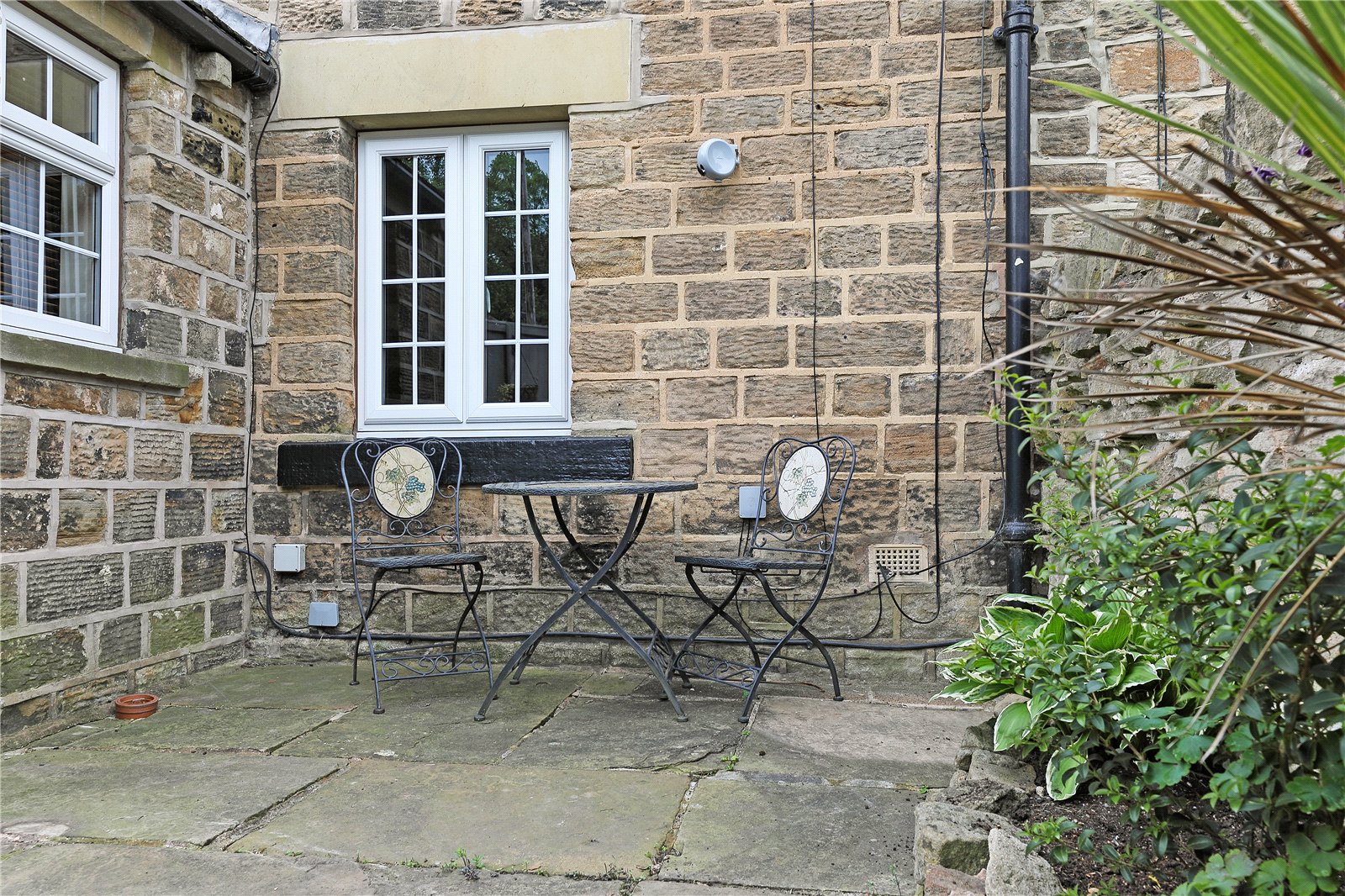 Outside An enclosed garden area with attractive Yorkshire stone paved patio and gated access from Almshouse Lane, useful garden shed with power laid on and raised flower beds.