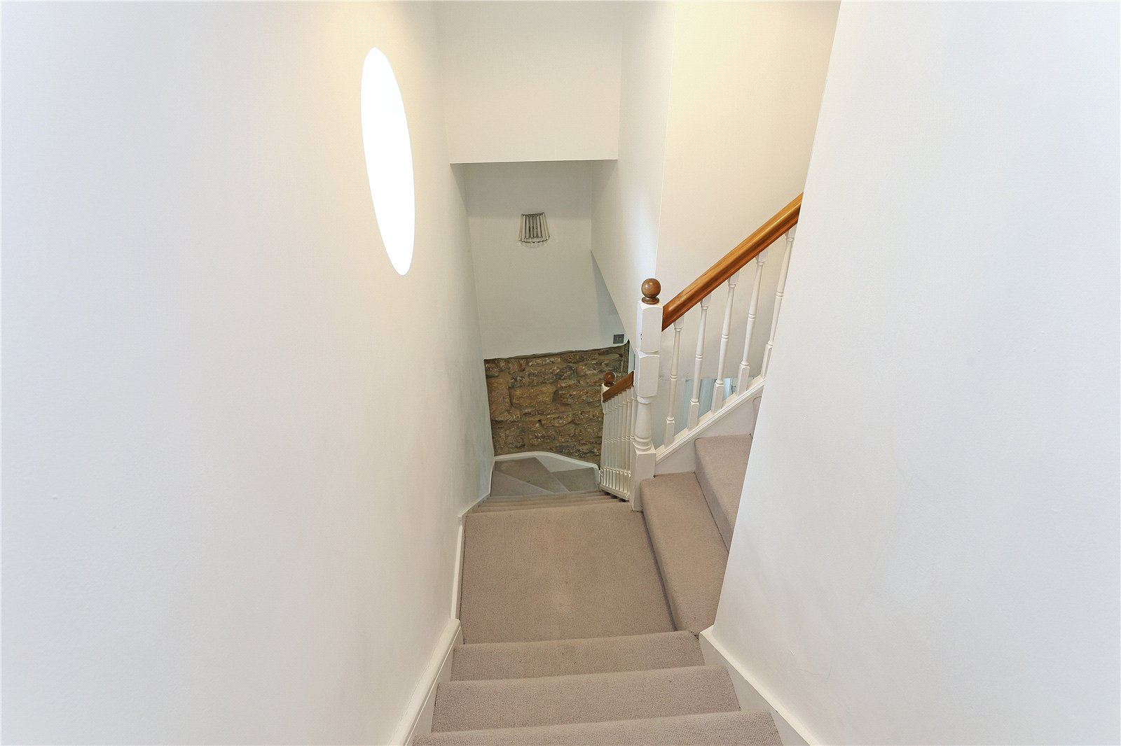 Bedroom To Rear 10'8" (3.25m) x 12' (3.66m) (10'8" (3.26m) (narrowing to 6'4" (1.92m)) x 12'1" (3.68m)). Having mullion double glazed window, beamed ceilings, storage cupboard over staircase, central heating radiator.