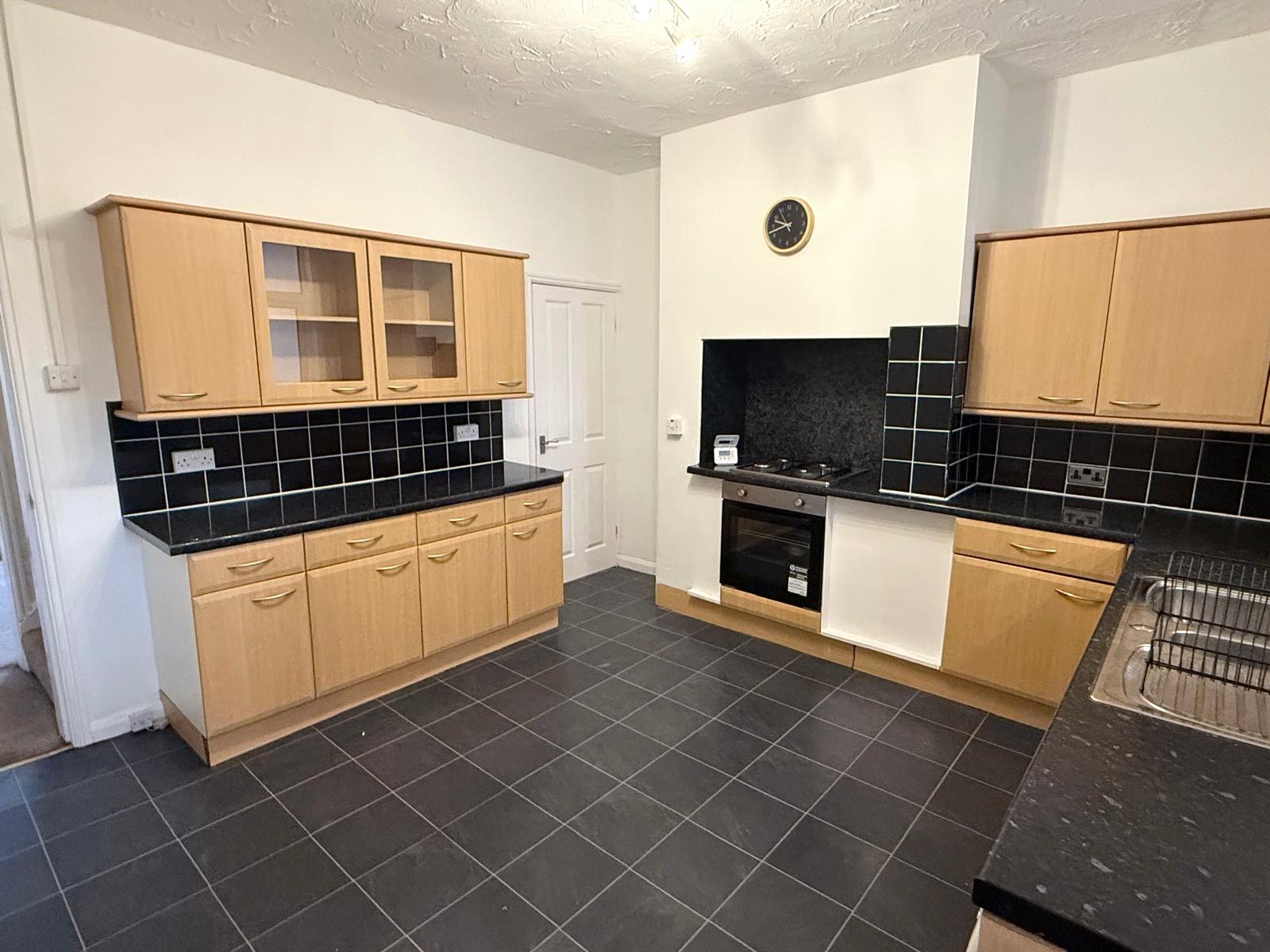 Kitchen 11'7" x 12'2" (3.53m x 3.7m). Spacious kitchen fitted with light oak veneered wall and base units, electric oven and gas hob, plumbing for washing machine and electrics for a fridge freezer. The kitchen has access to under stair storage, and leads onto the rear extension.