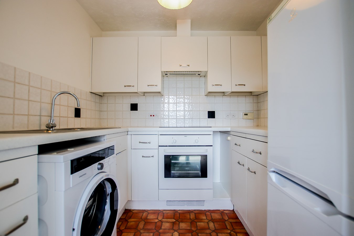 7' 7" x 6' 8" (2.31m x 2.03m) Fully fitted kitchen with electric hob, electric oven, fridge freezer and washing machine.