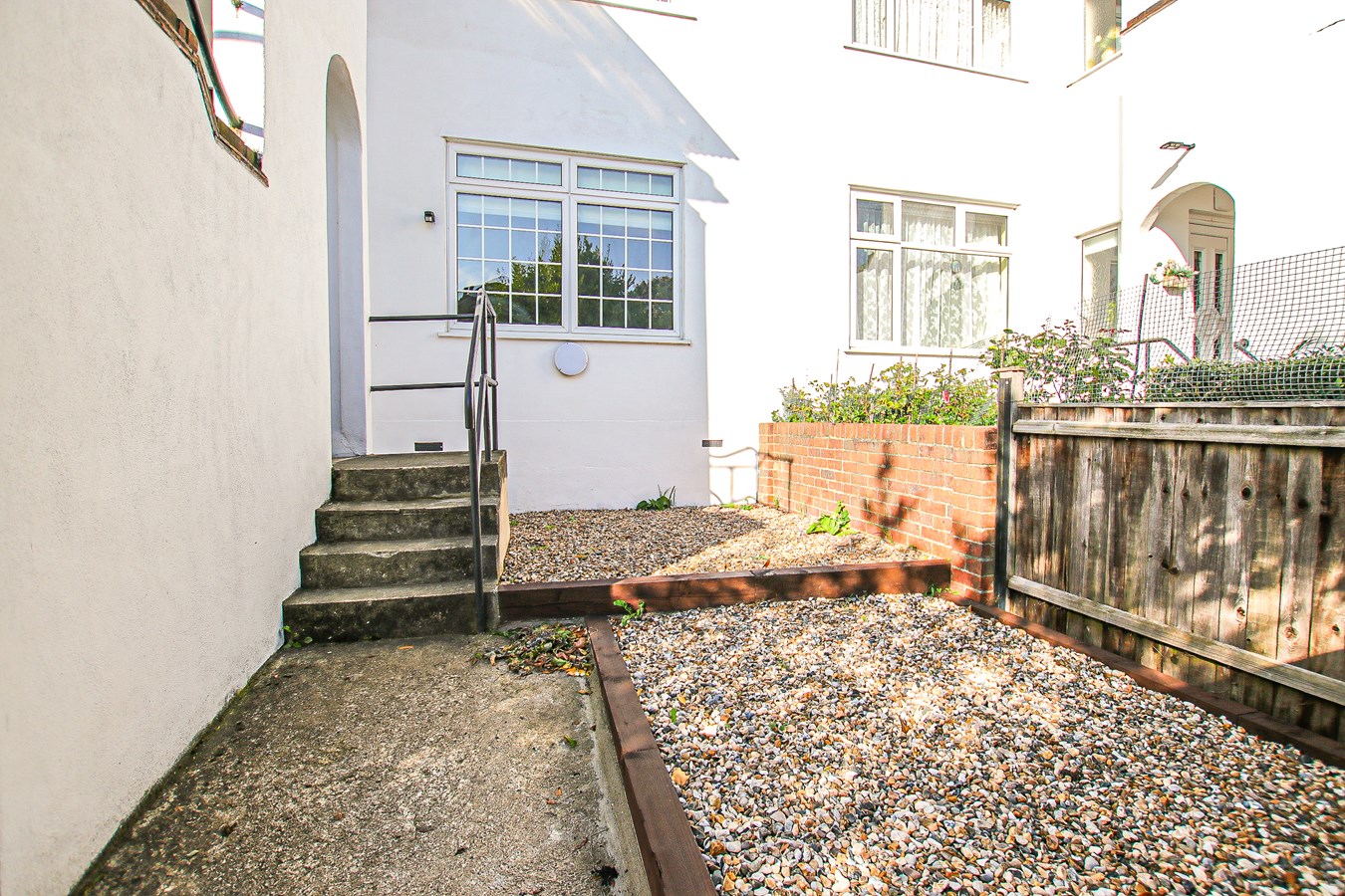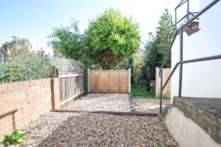 Small, shingled area directly behind the property. It also comes with an outside storage cupboard.