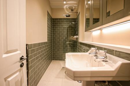 10' 3" x 3' 10" (3.12m x 1.17m) Wet room with walk-in shower, wash hand basin, W.C., part tiled walls, tiled floor and extractor fan.
