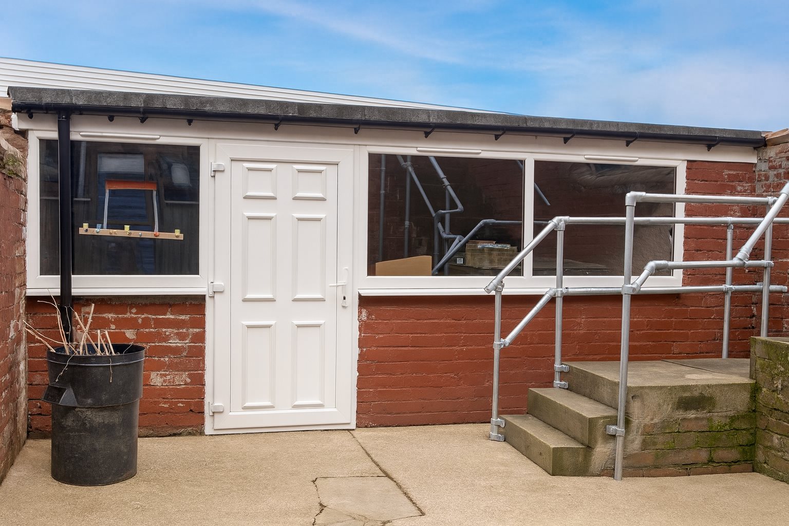 Plumbed for washing machine and space for a fridge/freezer. UPVC double glazed back door.