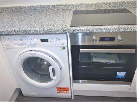 FITTED KITCHEN 12' 02" x 7' 02" (3.71m x 2.18m) Newly installed kitchen, Includes brand new washing machine, cooker, hob and fridge/freezer.