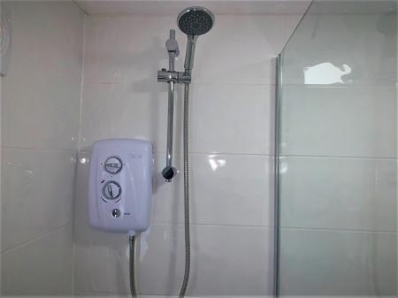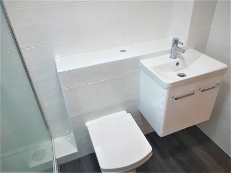 SHOWER ROOM 7' 02" x 5' 06" (2.18m x 1.68m) Absolutely stunning, finished in white with tiled walls and new contemporary suite, including extra large walk-in shower