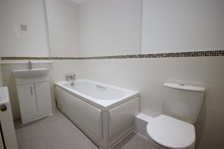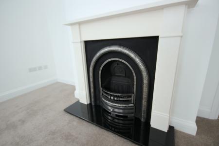 The lounge is neutral with a decorative fireplace while the large windows in the bay to the front have featured window shutters. The master bedroom is a good size double room and has an en-suite shower room with corner cubicle, WC and basin. The family bathroom has a white three piece suite, and the second bedroom is a single room with a built in cupboard.