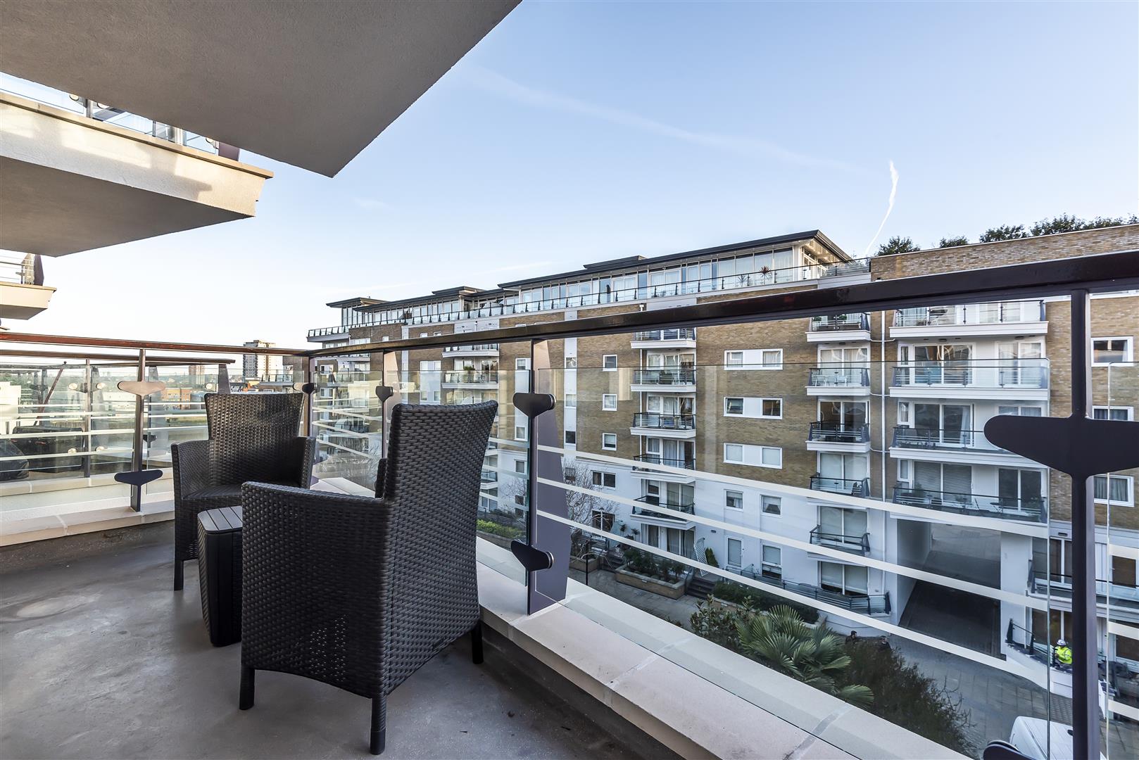 A stunning fifth floor light and spacious apartment positioned in this wonderful riverside development. Consisting of entrance hall, reception room with private balcony and river views, partially open plan fitted kitchen, two double bedrooms with en-suite shower room to master and main bathroom. The property is well presented throughout has laminate wood and tiled floors, 24hr concierge and an on site shop.