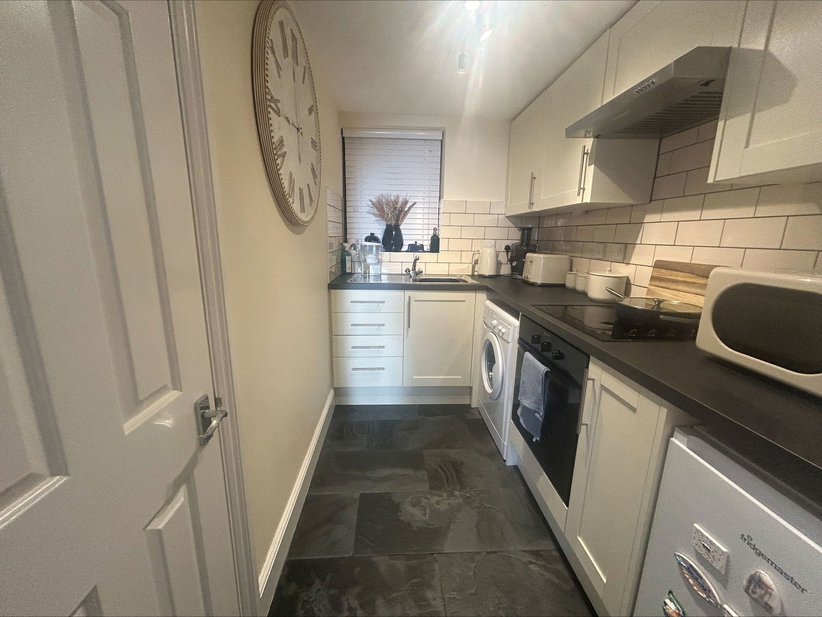 E- Mail enquiries please. RENT TO INCLUDE WATER COST. A spacious (which floor) studio apartment benefiting from its own front door and enjoying communal gardens adjacent to the River Lee. The immaculately presented accommodation comprises: Hall, kitchen with white goods, living room/ bedroom and bathroom. There is allocated parking for one car.