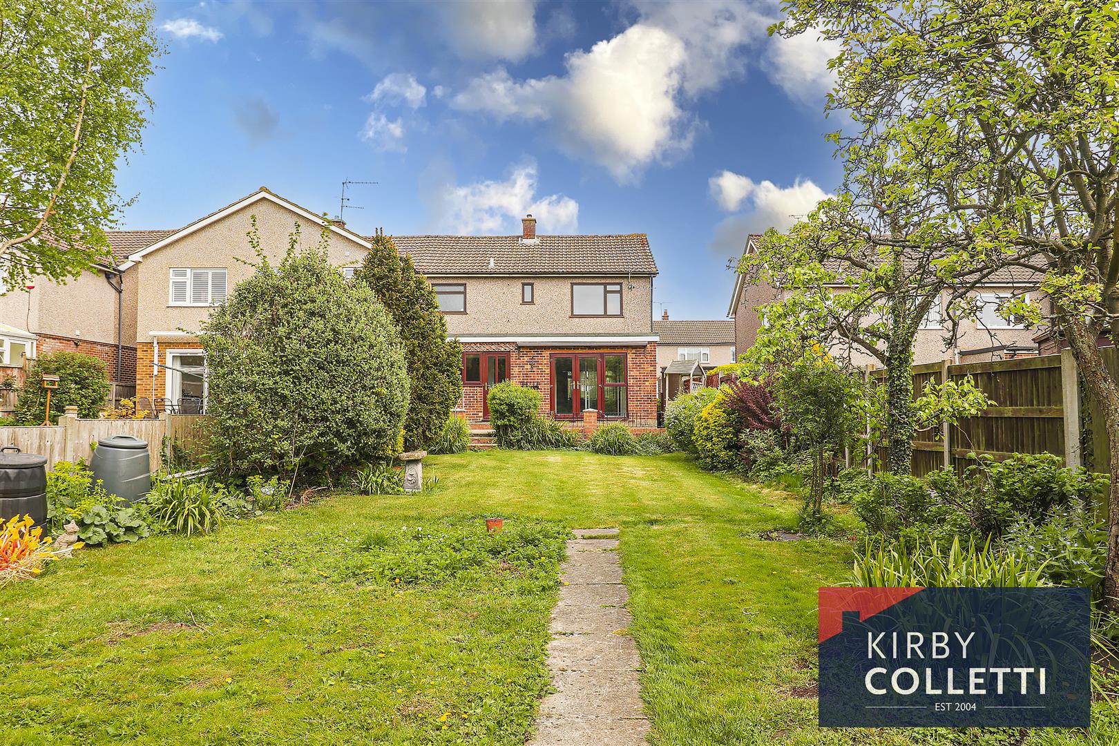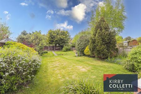 Rear Garden - 87ft West facing garden. Paved patio area with steps down to large lawn area. Shrub borers. Outside water tap. Side pedestrian access.