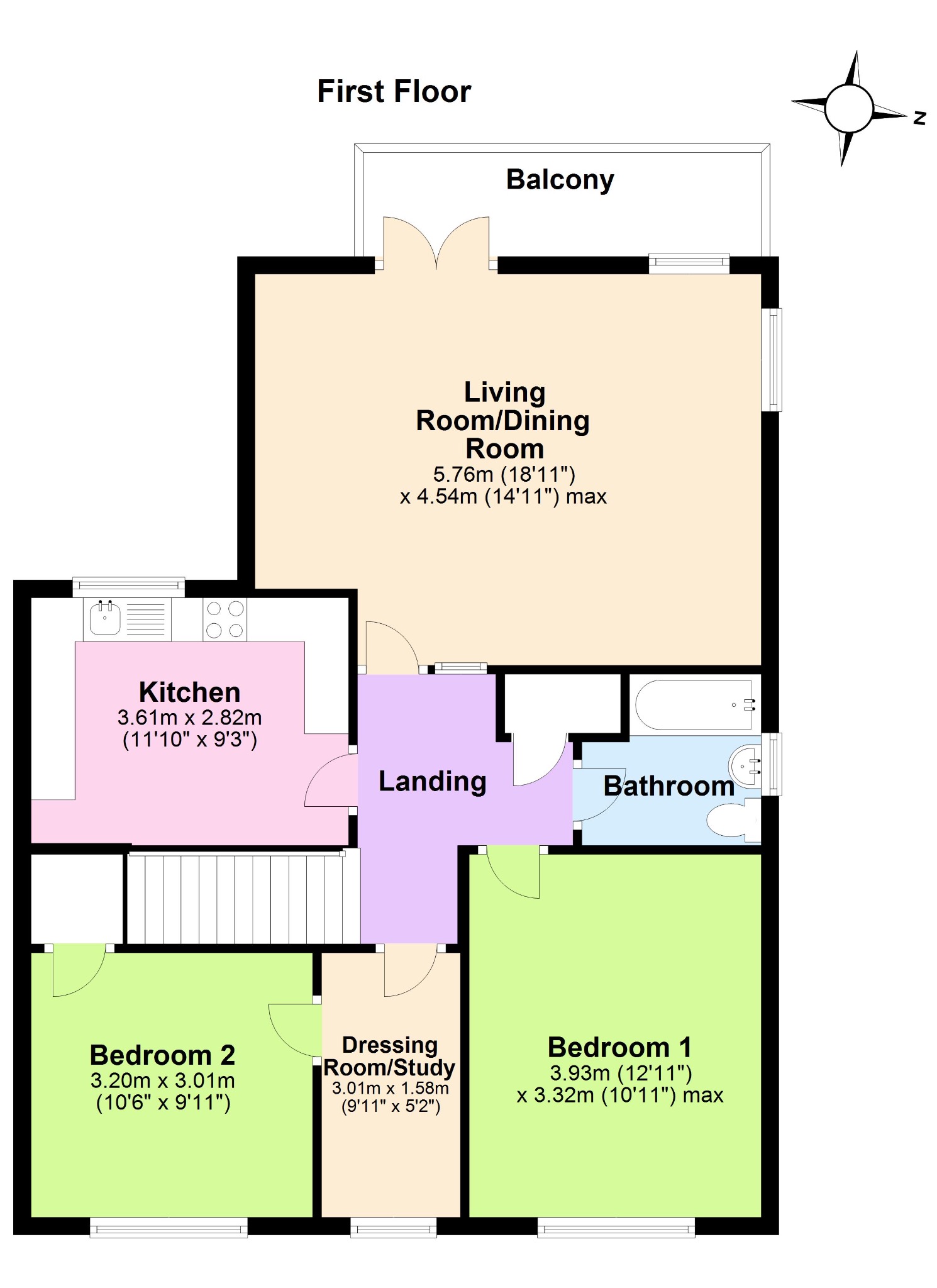 DRESSING ROOM/STUDY 3.01m x 1.58m (9’11” x 5’2”), East, similar views to Bedroom 1, access to: