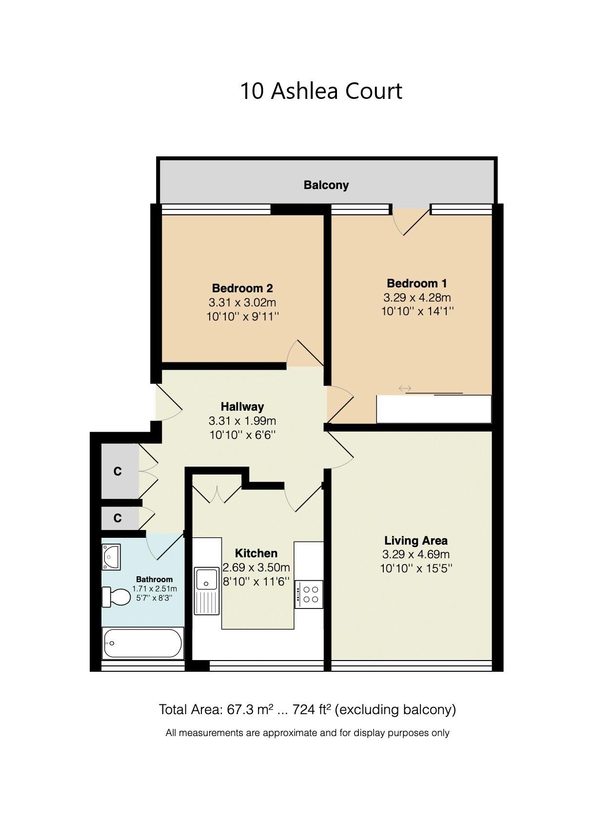 This well presented first floor apartment provides spacious accommodation including two double bedrooms, with a balcony accessed from the master bedroom, a good size lounge , fitted kitchen & white bathroom suite.