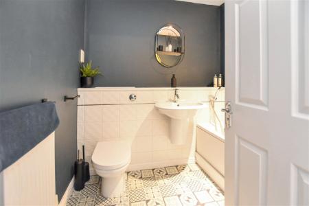This property boasts five generous bedrooms and three modern bathrooms, offering ample space and flexibility. Outside, the property features a front grassed garden with full borders and a slabbed pathway, while the rear showcases a low-maintenance stone flagged courtyard, providing private outdoor space and convenient access to the off-street parking area.