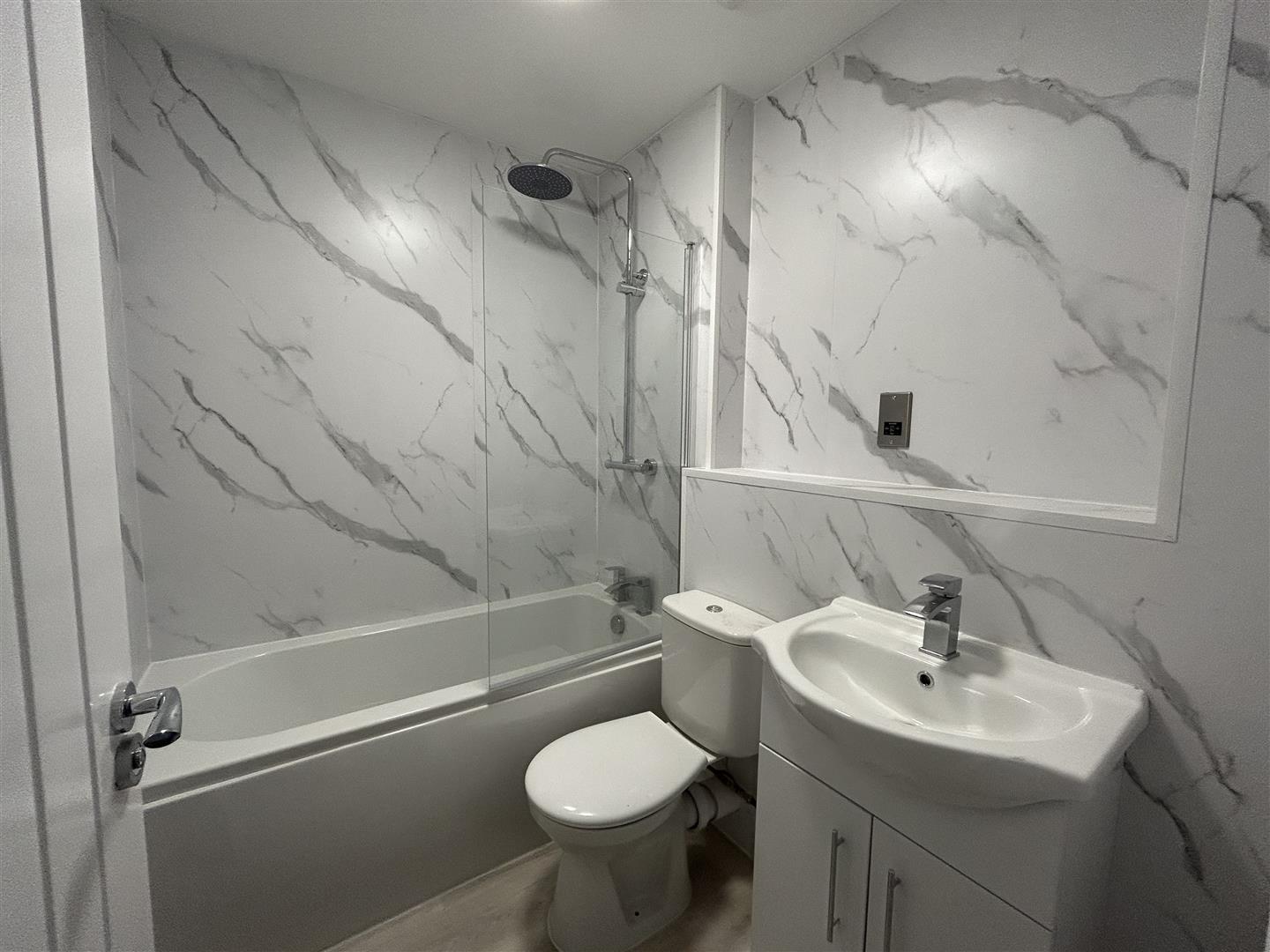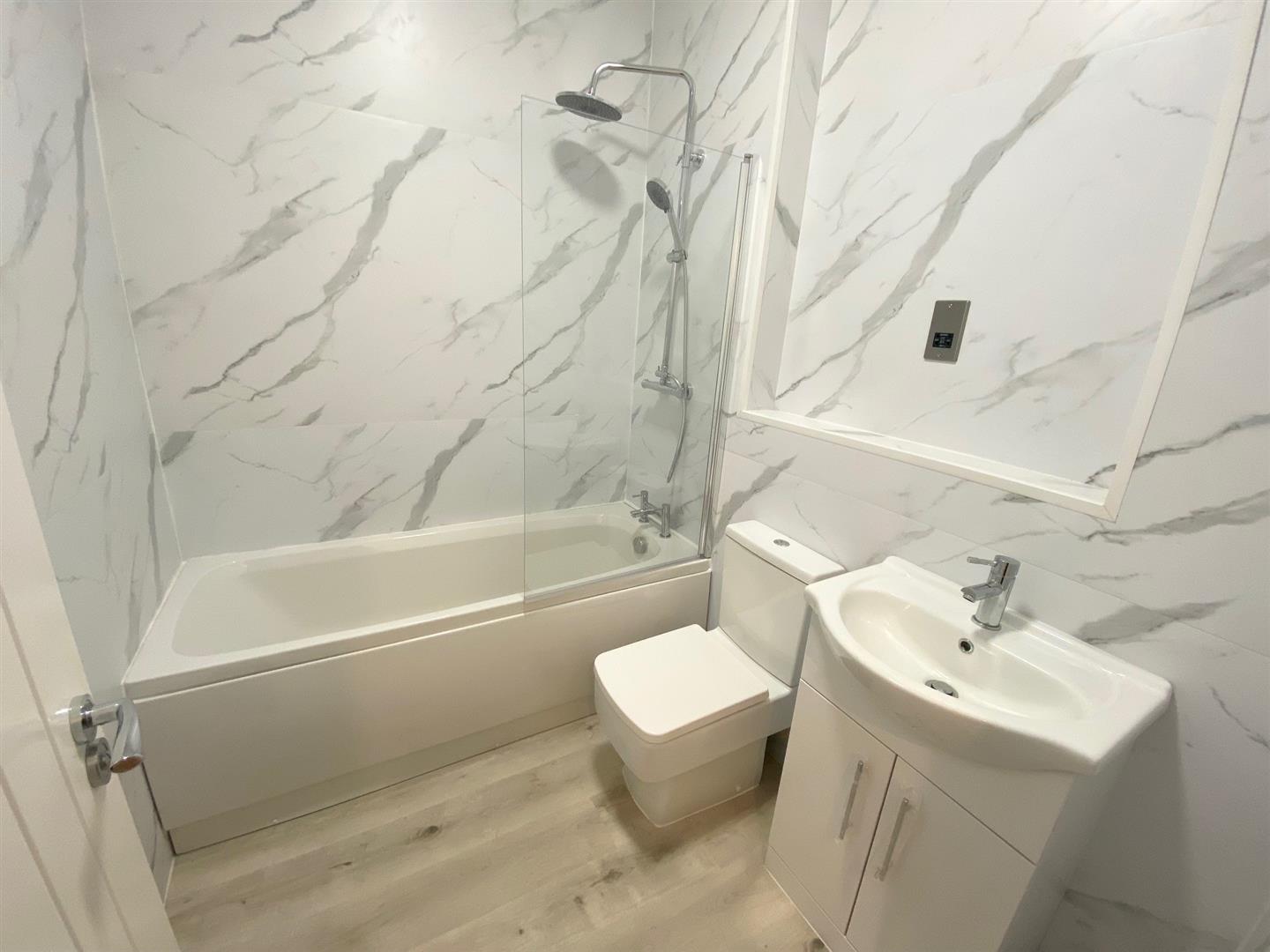 Bathroom - Fully tiled, panelled bath with combination shower over and screen, vanity sink unit and low level w.c.