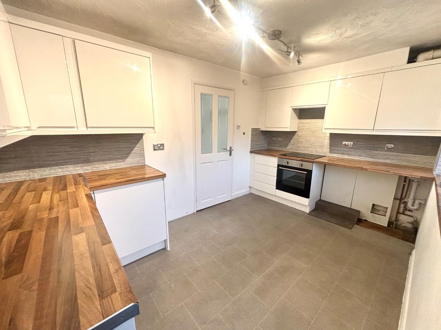 Kitchen - 3.94m x 3.05m into bay (12'11" x 10' into bay ) - Vinyl flooring, matching range of high gloss, soft close base and wall units, with wooden work surfaces. Space and plumbing for appliances, with modern floor to ceiling radiators, raised bay window to rear elevation and smooth walls with tiled splash backs, access to rear garden