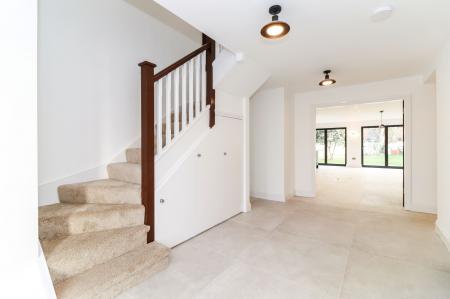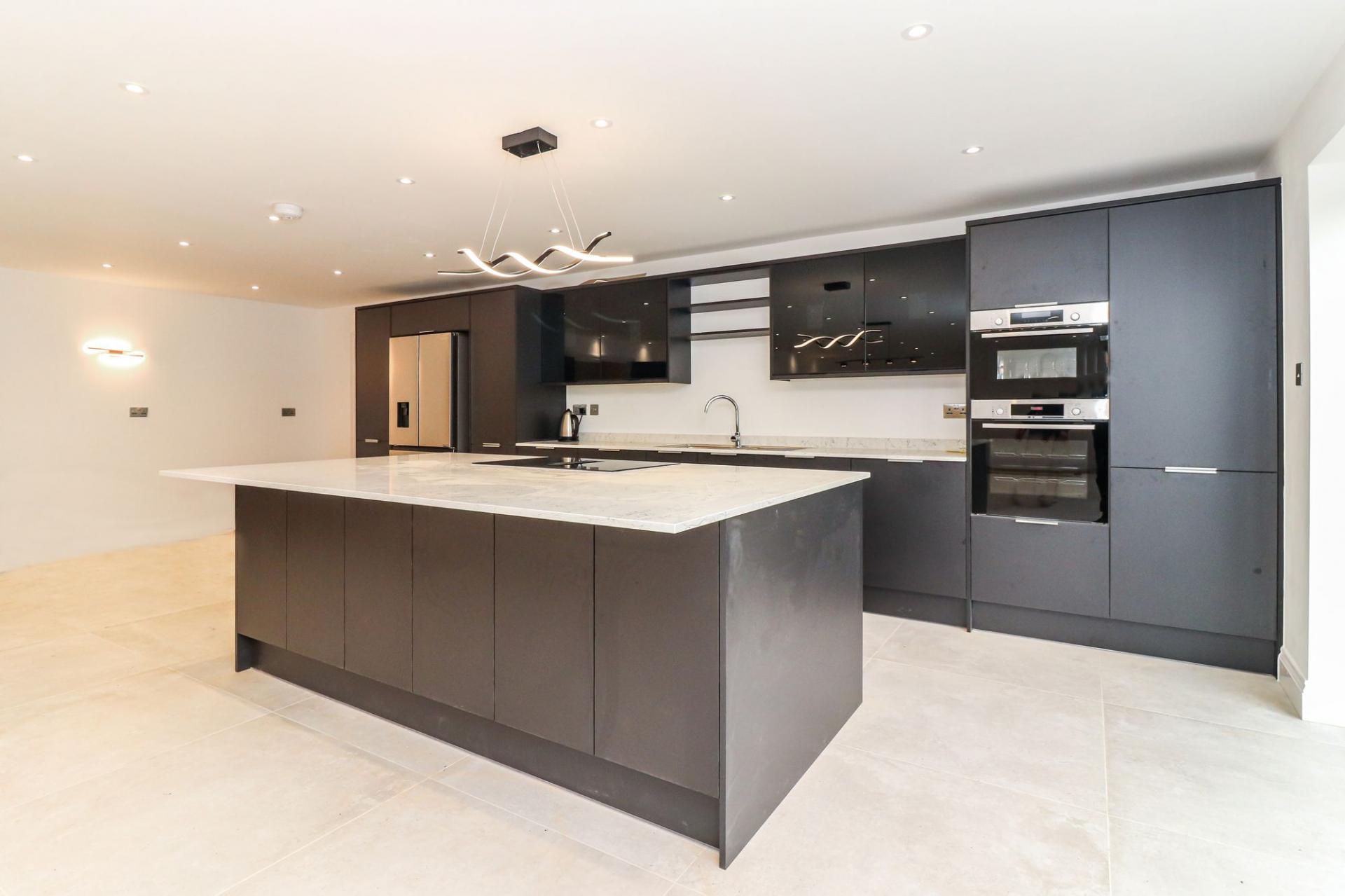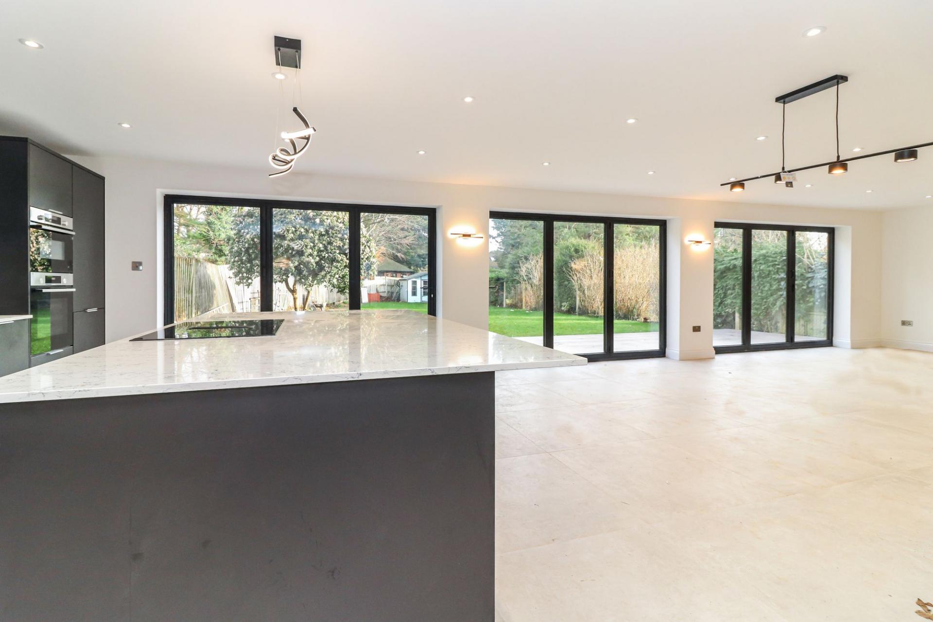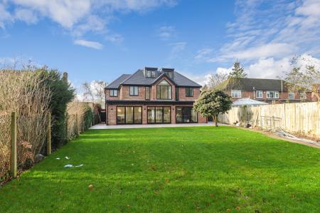 The ground floor offers exceptional versatility with a dedicated study room, a closet room, a cinema room, and a contemporary shower room, catering to both family living and entertaining needs. The beautifully presented kitchen features large format tiles for a sleek and contemporary feel, complemented by an island and a full suite of integrated appliances There is an adjoining separate utility room providing practical access to the side of the house and garden. Three bi-fold doors seamlessly connect the living space to the outdoors, enhancing the sense of openness. The beautifully presented garden also has a summerhouse and a shed for additional storage