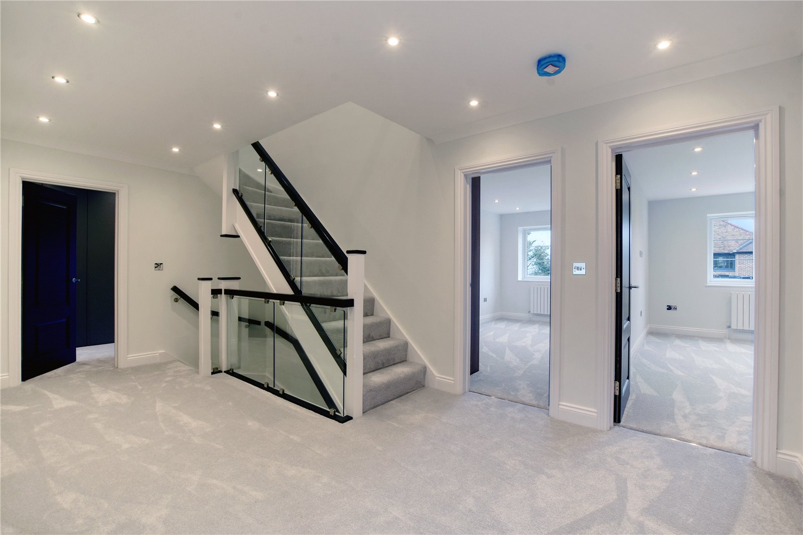 Ascending to the first floor via the black stained handrail and glazed staircase, you will discover four bedrooms and three bathrooms, two of which are en-suite.