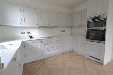 OPEN PLAN KITCHEN/ DINING /FAMILY AREA: Range of fitted wall and base units, incorporating integrated appliances to include electric oven & grill, induction hob, extractor hood, fridge/freezer & dishwasher, butler sink with mixer tap over, side aspect double-glazed vertical sliding window. There is room for comfortable seating, with a rear aspect double-glazed vertical sliding window, and a generous area for a dining table, rear aspect 'French' doors leading to garden. Parquet flooring throughout.