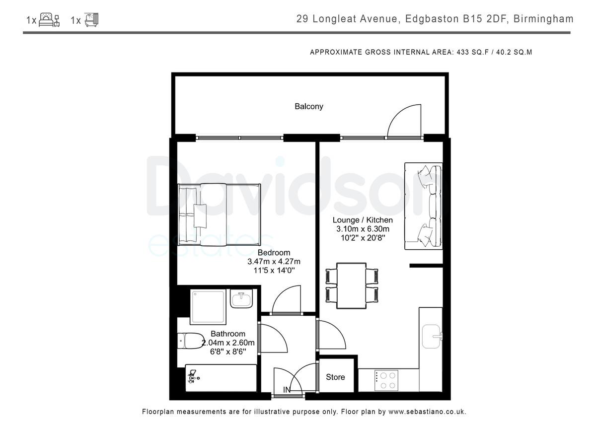 Situated on the first floor, the apartment comprises of a open-plan reception and kitchen area. Off the living area there is a hallway leading off to a large double bedroom and a family bathroom.