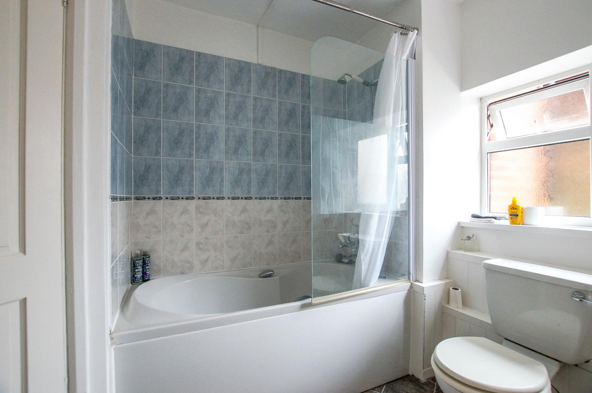 - Bathroom with shower over