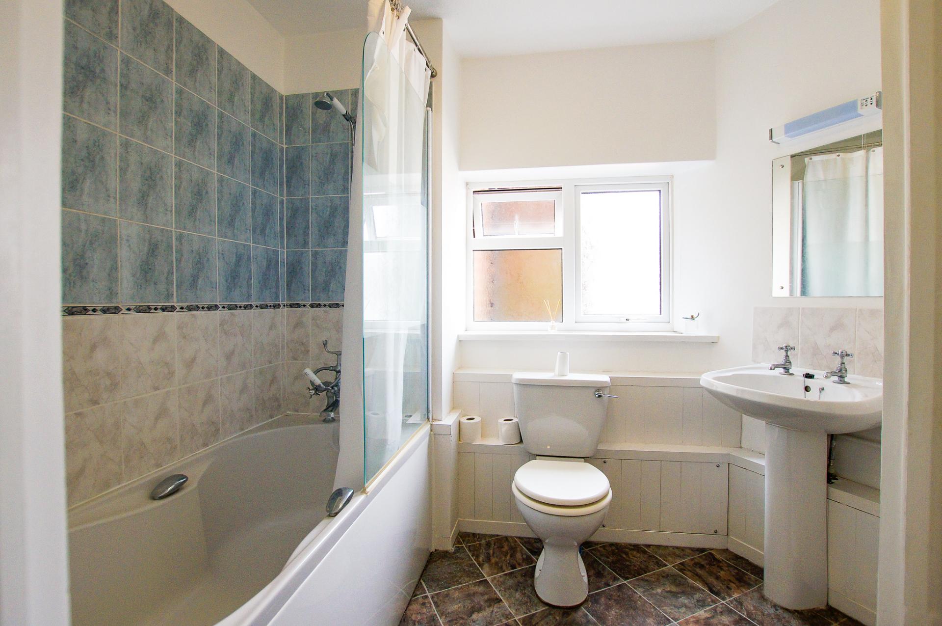 A spacious, two bedroom, two bathroom (one ensuite) first floor flat, ideally located close to school and local shops.