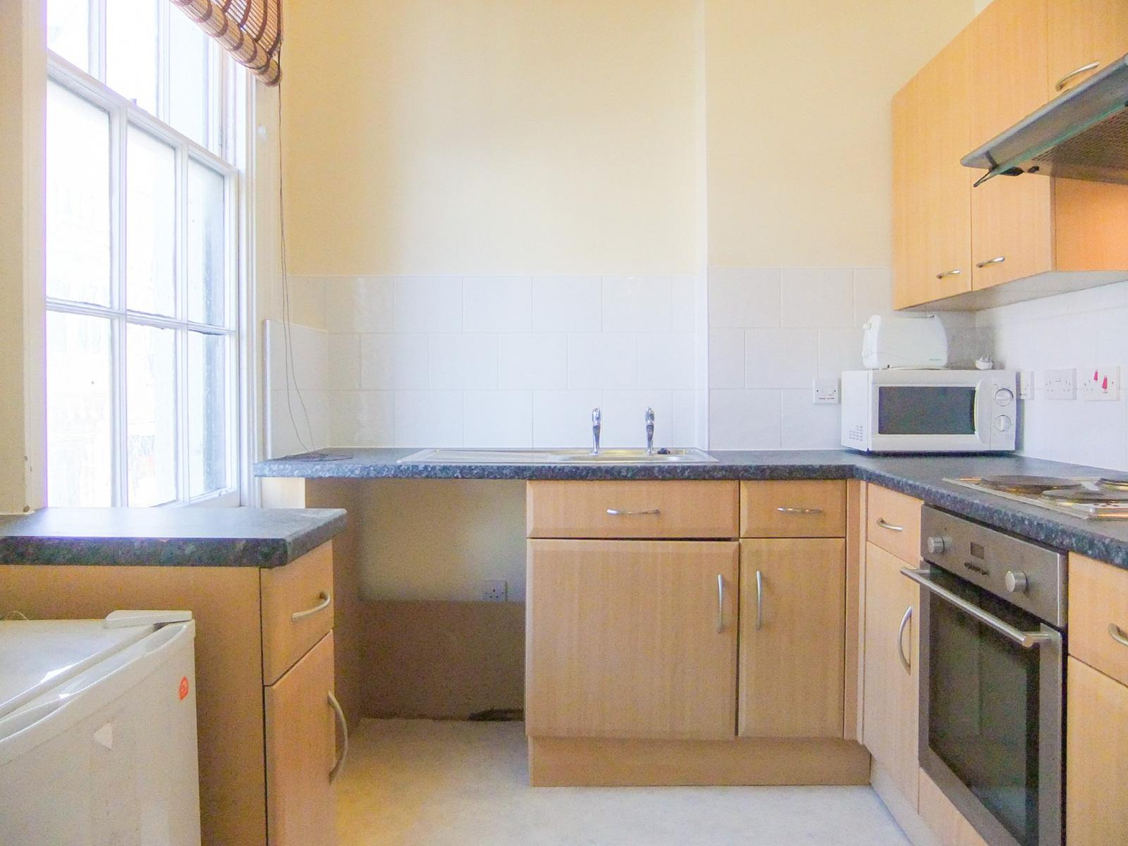 The flat is part of the conversion of the former Royal Arms pub and the size of the accommodation has allowed the landlord to provide a substantial flat. The accommodation comprises a generous open plan /living room, which is then divided by a partition wall for the bedroom. There is also a separate kitchen and a bathroom with shower over. Permit parking could be available from the county council.