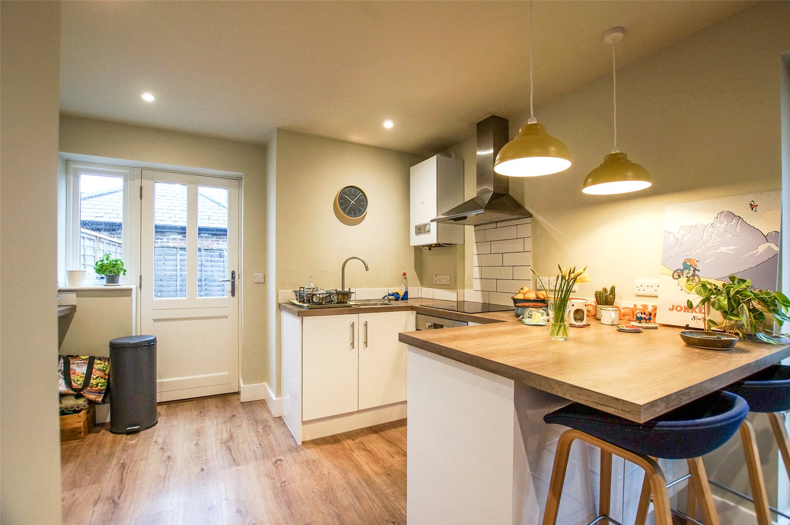 This stylish accommodation boasts a modern, open-plan living araea with a well-appointed kitchen and a convenient cloakroom. A central staircase leads to the generously sized double bedroom, complete with ensuite shower room. At the rear, a spacious and private patio garden provides a perfect spot for relaxation.