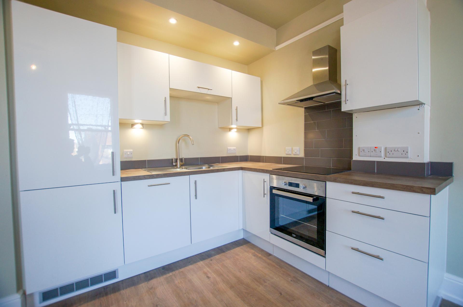 - first floor flat newly modernised kitchen/living room integral appliances 2 double bedrooms bathroom and shower room on street parking walking distance of city centre
