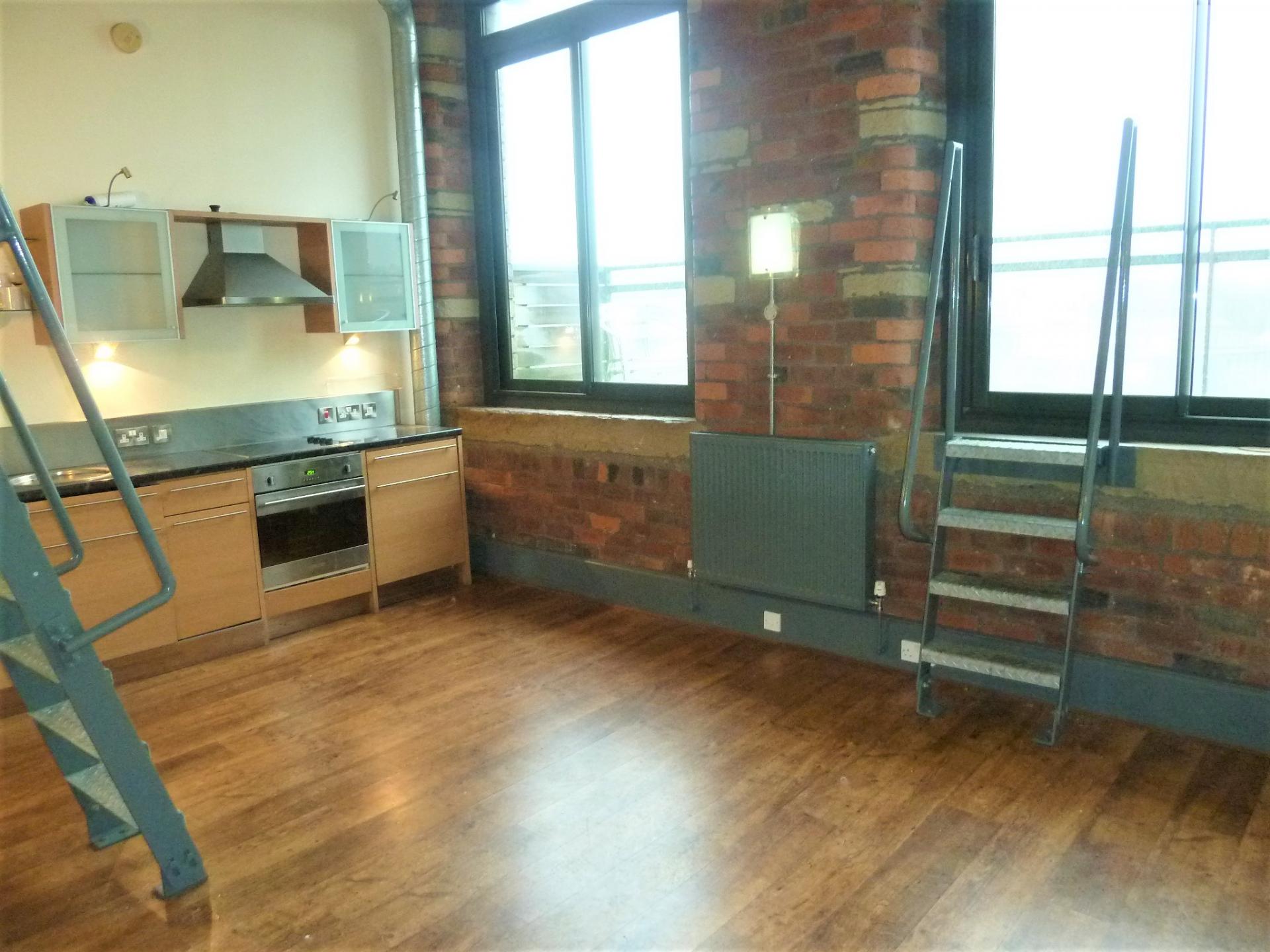 Open Plan Kitchen/ Lounge 13'1" (4m) x 17' (5.18m) (at widest point). Kitchen fitted with a range of wall and base units, oven, hob and extractor over, integrated fridge with freezer compartment, washer dryer, stairs lead to mezzanine storage level