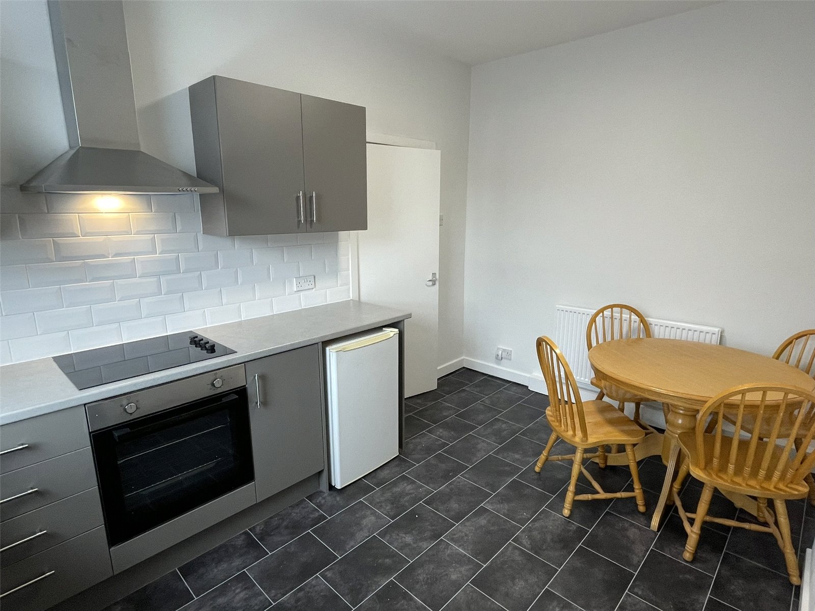 Dining Kitchen 14'6" x 9'9" (4.42m x 2.97m). Spacious dining kitchen fitted with a brand new grey kitchen with a range of wall and base units complimentary worktops and splash back tiling, stainless steel sink and drainer, oven with electric hob and extractor over, washing machine, undercounter fridge, brand new boiler, UPVc window, dining table and chairs.